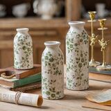 This beautiful ceramic vase makes a lovely centerpiece or decoration. With its elegant French Style pattern and subtle curves, it adds natural charm to any space. The pitcher-style design allows for full, bountiful bouquets of fresh or dried flowers. At just over 9 inches tall, it has ample capacity without dominating the tabletop. Its smooth glazed finish in an earthy green tone feels classic yet modern. The sturdy handle on side makes it easy to carry full of blooms. Whether as a gift for a wedding or housewarming, or to enhance your own home, this vase lends beauty and warmth to any room. Display it brimming with blooms in the dining area, living room, or on the kitchen counter for an instant pop of nature indoors.