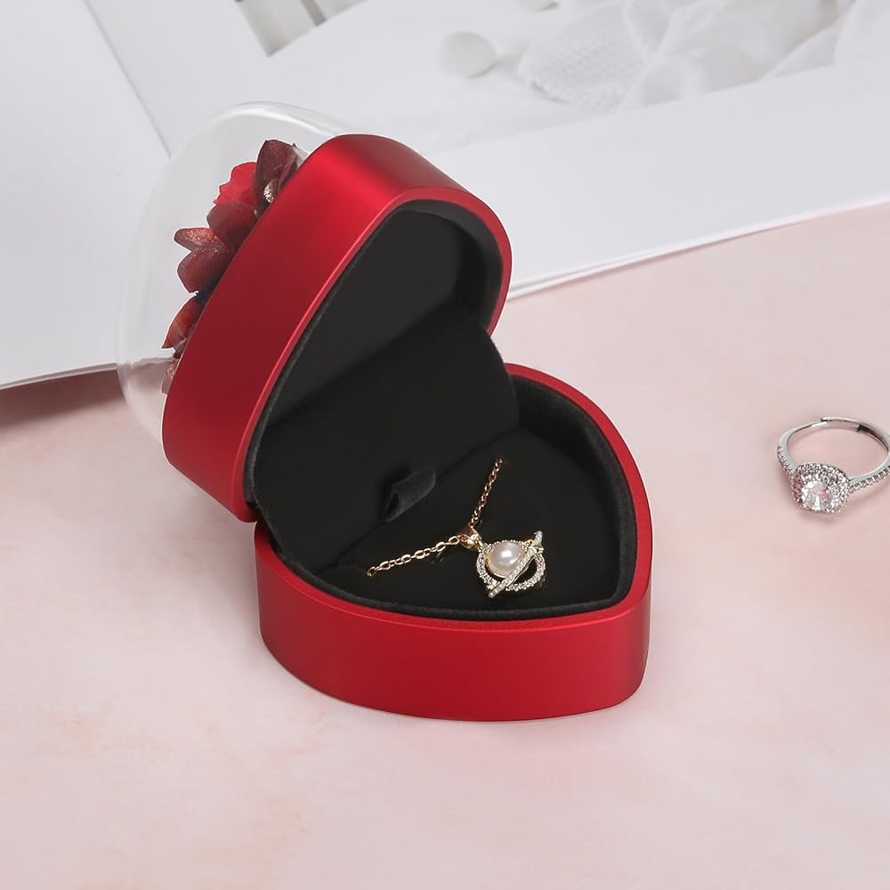 ROMANTIC HEART SHAPE -The necklace box is a heart-shaped design, preserved flower on the top makes your necklace box look Unique and Elegant.Romantic, beautiful, and practical.