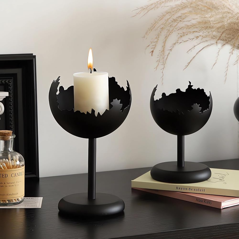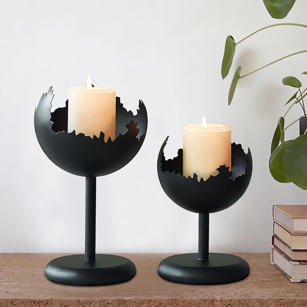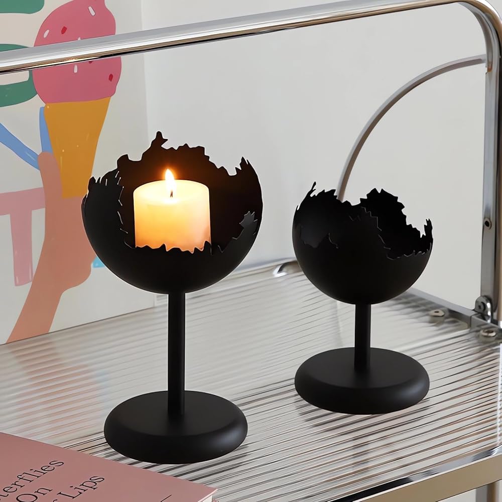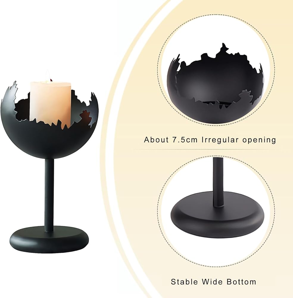 Introducing our unique Irregular Candle Holder, a perfect addition to your haunted house decor. This black and gold metallic candle holder adds an eerie touch to any Halloween setting. Crafted with attention to detail, this candle holder stands out with its irregular shape, creating a captivating centerpiece for your table. Designed to hold tealight or votive candles, Elevate your Halloween decorations with this one-of-a-kind candle holder that combines style and functionality. Get ready to impress your guests with our stunning Irregular Candle Holder, a must-have for any Halloween enthusiast.The irregular modern design attracts people and becomes a perfect decoration for the centerpiece of the dining table, which can decorate any corner of your home, and the colors of these two models that follow the times will also let you experience a unique and modern sense of design.
