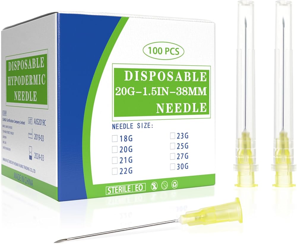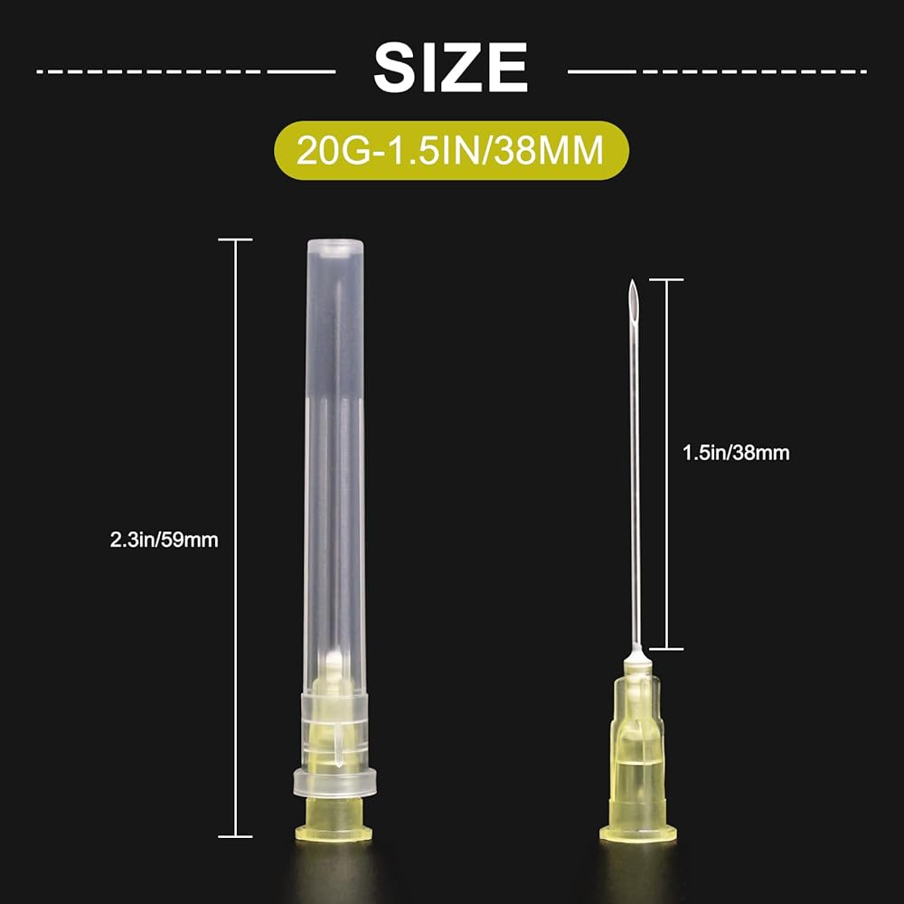 The product includes: 100pcs 20G 1.5in/38mm needle