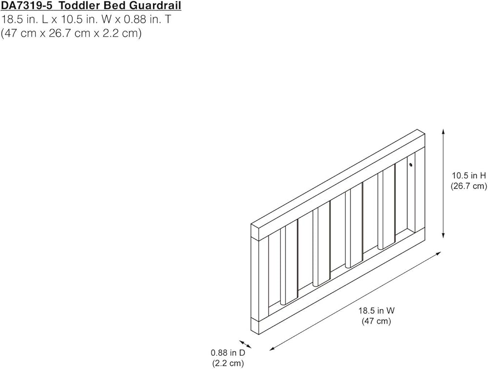 Ships in one box. Minimal assembly required. 1-year limited warranty. The toddler rail meets JPMA standards, but it is not certified. Both items meet ASTM standards.