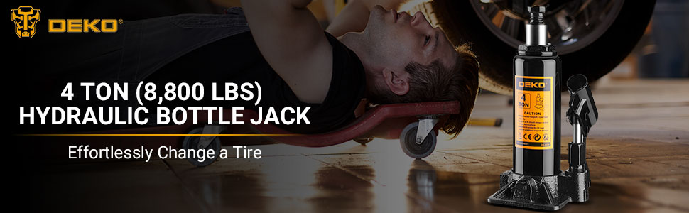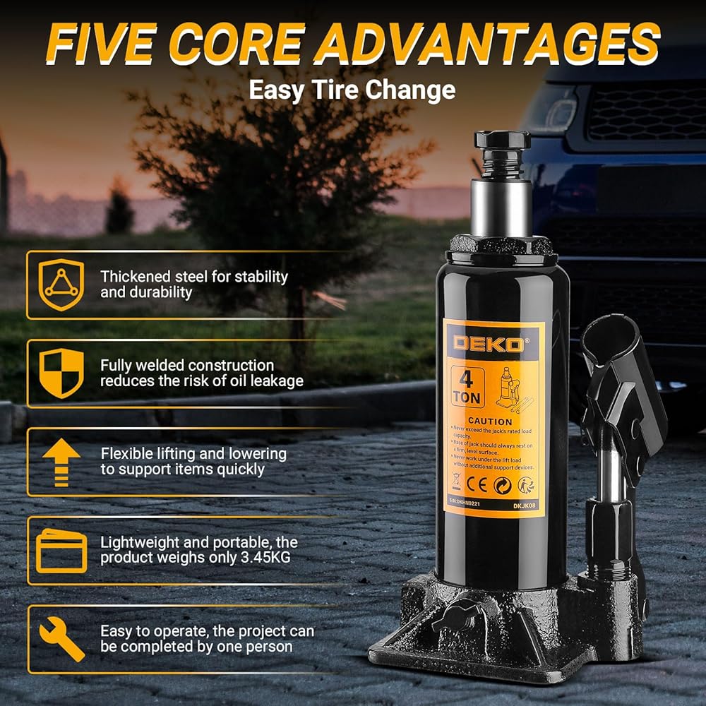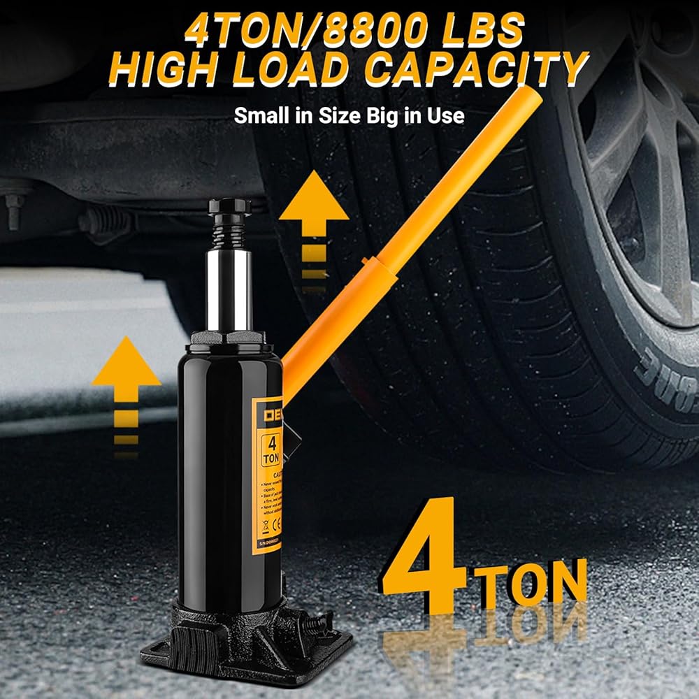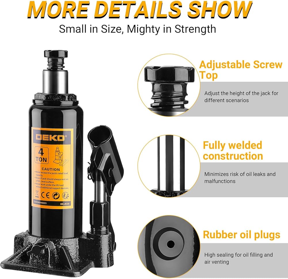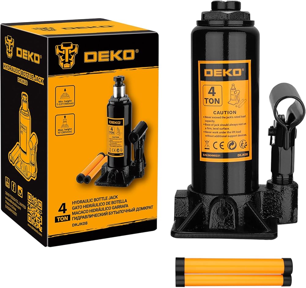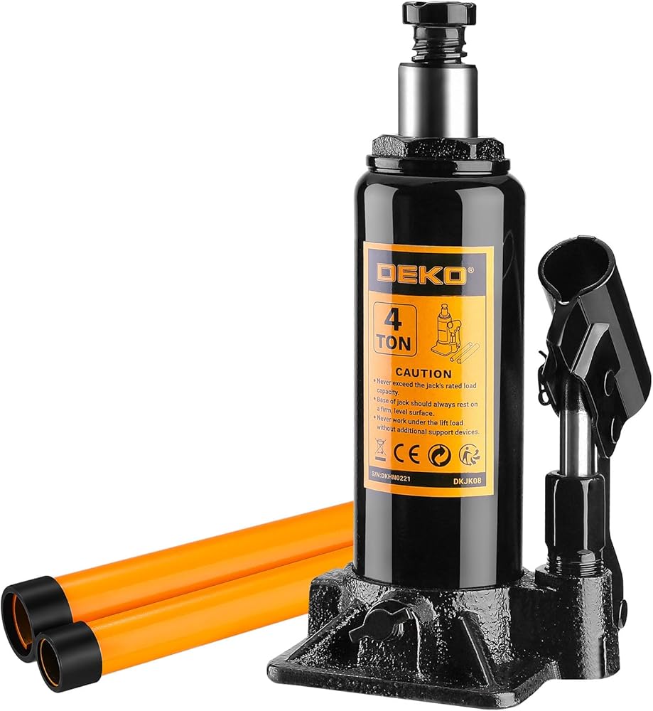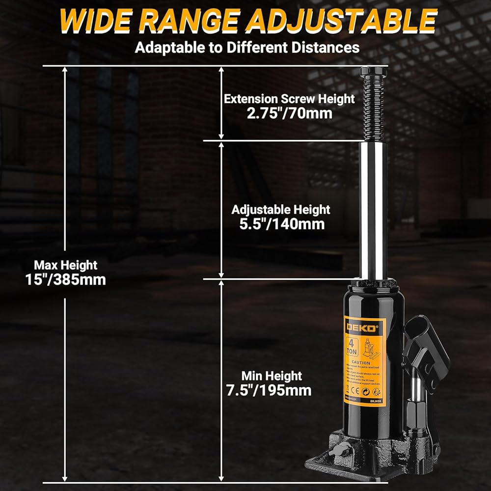 مقبس زجاجة هيدروليكي 4 طن (8,800 رطل) من DEKOPRO، نطاق رفع 7.5-15 بوصة، مقبس سيارة هيدروليكي ملحوم بمقبض طويل للسيارة والبيك اب والشاحنة وإصلاح السيارات