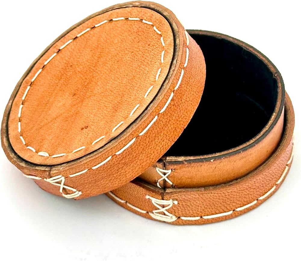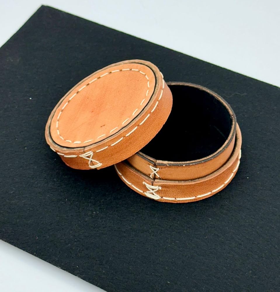 صندوق جلدي مصنوع يدويًا، صناديق مجوهرات، صندوق دائري، صندوق مخيط يدويًا، صندوق ديكور، مستلزمات تخزين، صندوق صغير