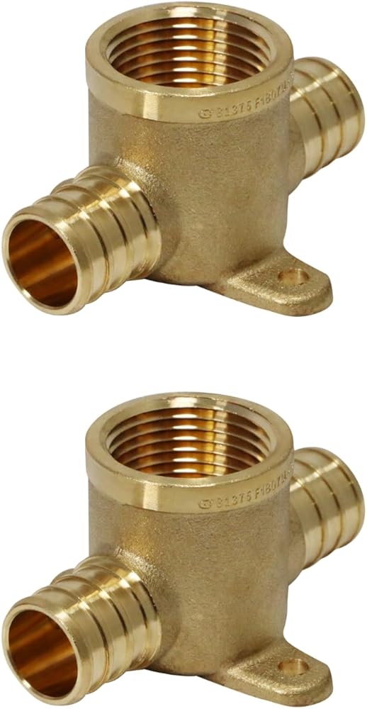 2 Pieces 3/4" Pex x 3/4" Pex x 3/4" Female Tee Drop Ear, Brass Crimp Fitting - Brass, Pex B