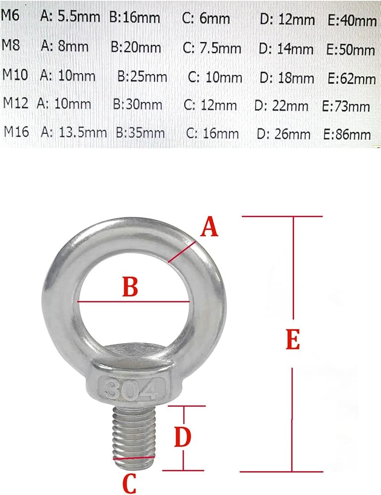• Eye bolts made of 304 stainless steel, high hardness, corrosion resistance, won't rust,can be used in humid environments.