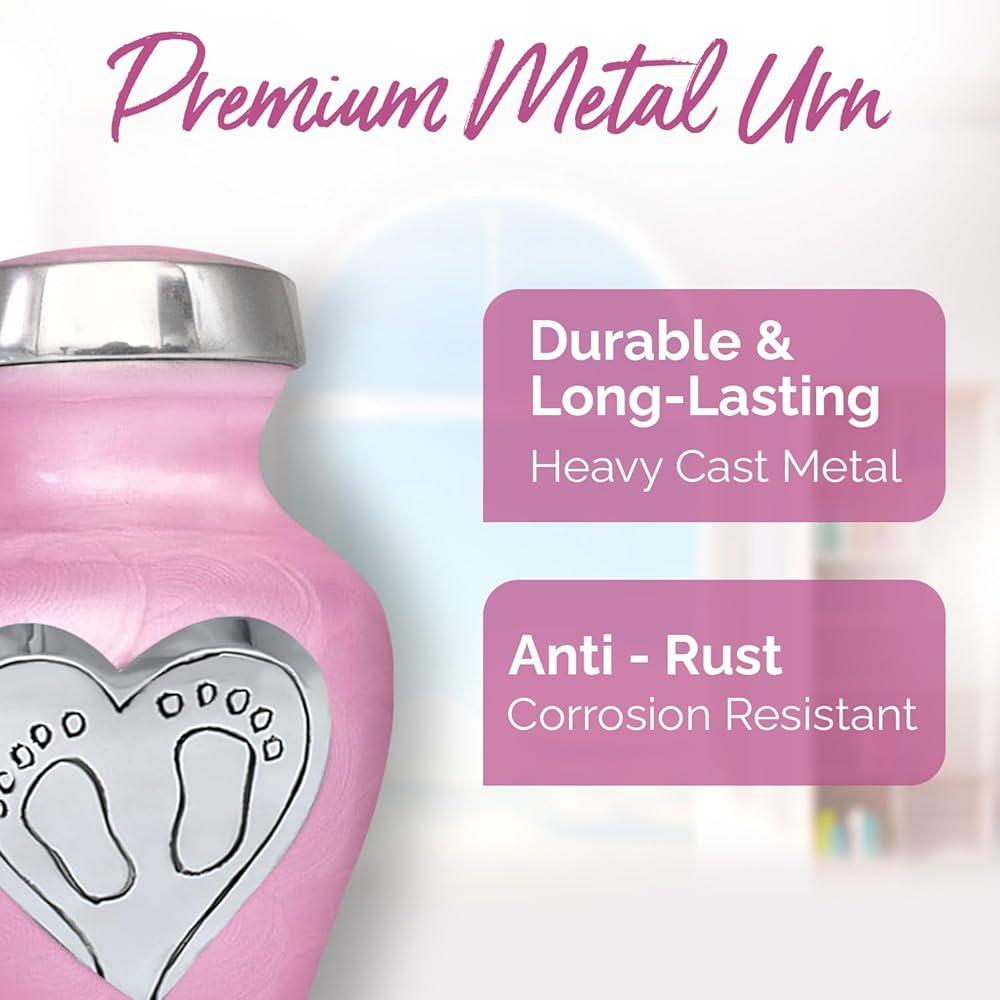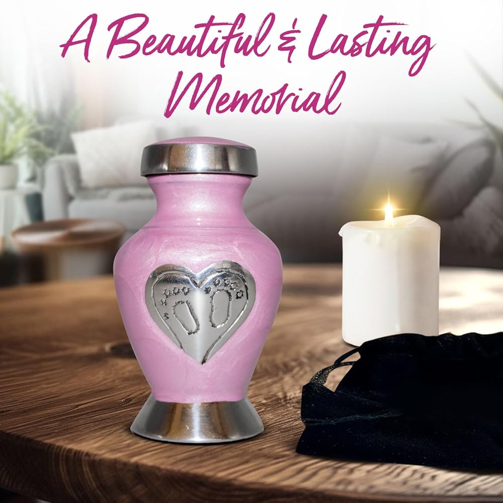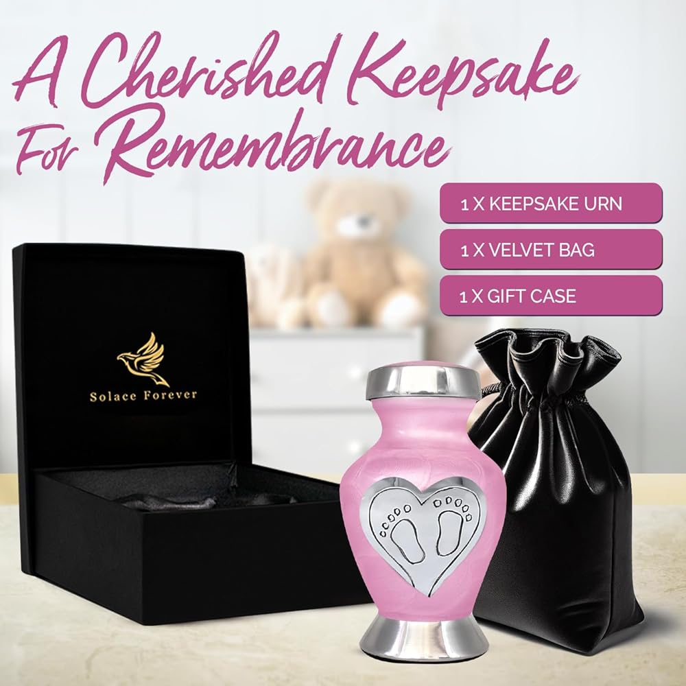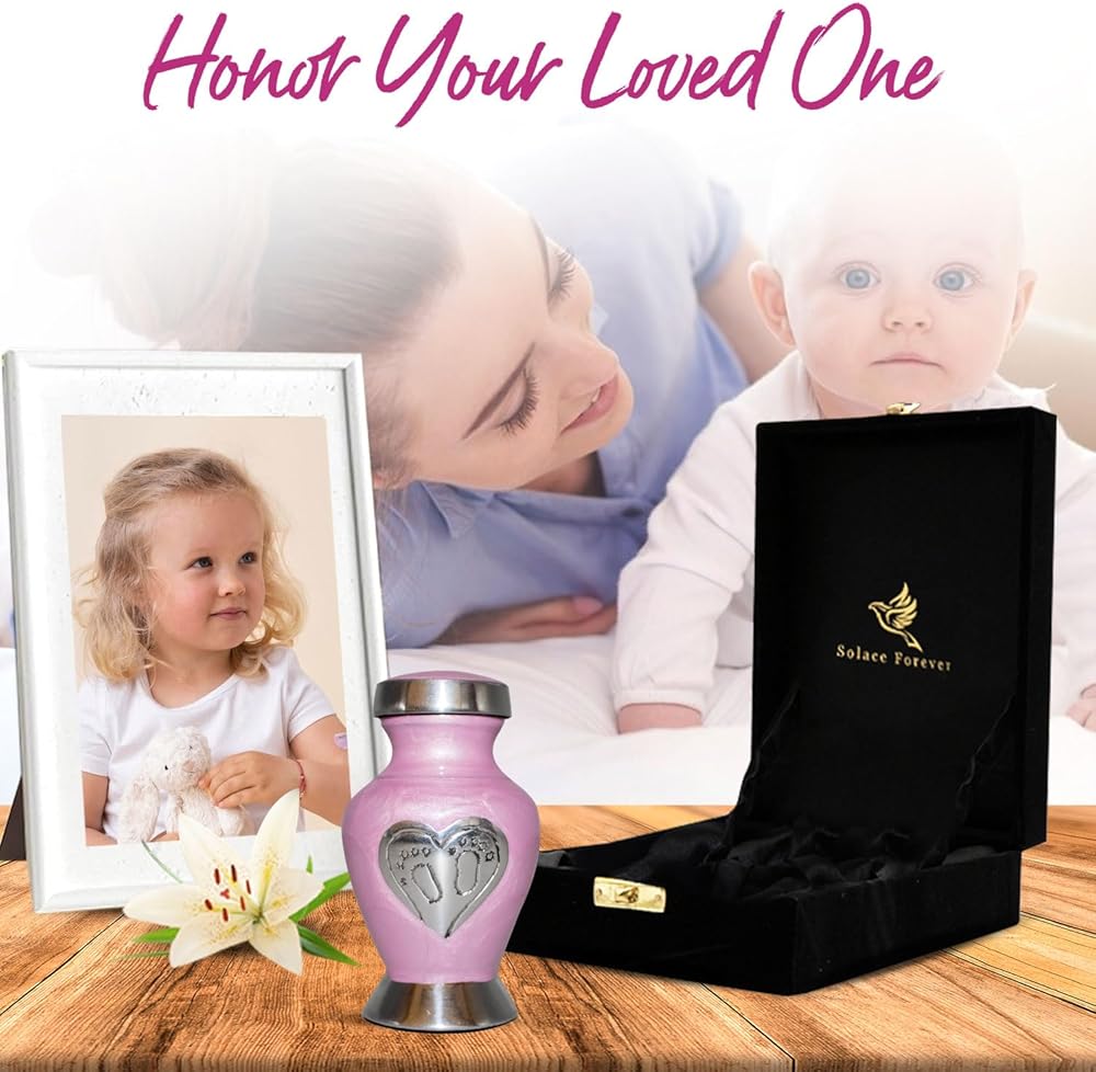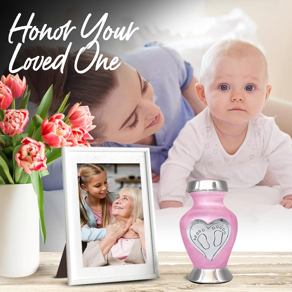 جرة أطفال جميلة للرماد: امنح أحبائك الحب الذي يستحقه. لقد صُنعت جرة الأطفال الخاصة بنا يدويًا بكل حب وعناية. تحتوي جرة الطفل الزرقاء على مسمار علوي ملولب، مما يضمن الحفاظ على بقايا طفلك آمنة. الجزء السفلي من جرة حرق رماد الأطفال مغطى بمادة عالية الجودة من أجل قبضة واستقرار أفضل. هذه الجرة الجميلة للأطفال الرضع ستكرم أحبائك إلى الأبد.