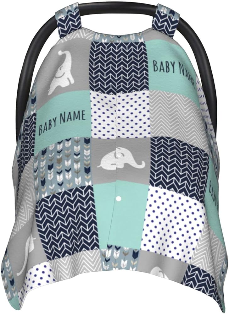 مخصصة مخصصة للمقعد في الفيل اللطيف للمقعد للطفل للأطفال الذين يحملون اسمًا ، وأغطية مقعد سيارة مخصصة للبنين والبنات ، وفتح مينكري للرضاعة الطبيعية المظلات للسيارات للرضع من أجل المولود الجديد