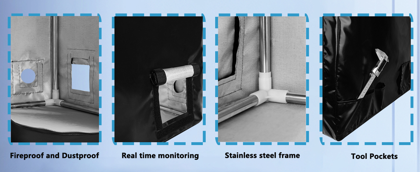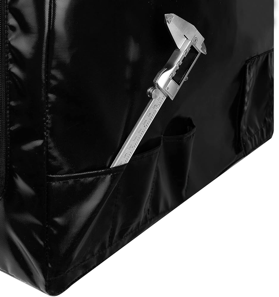 مادة متينة: مصنوعة من البوليستر المصفح PVC، وقماش من الألياف الزجاجية المركبة المصنوعة من السيليكون المقاوم للحريق. تم تصميم الغطاء مقاس 21 بوصة × 24.9 بوصة × 29.5 بوصة ليدوم طويلاً. وهو مقاوم للحريق وآمن من التمزق والتآكل. هيكل ثابت وفير فضاء.