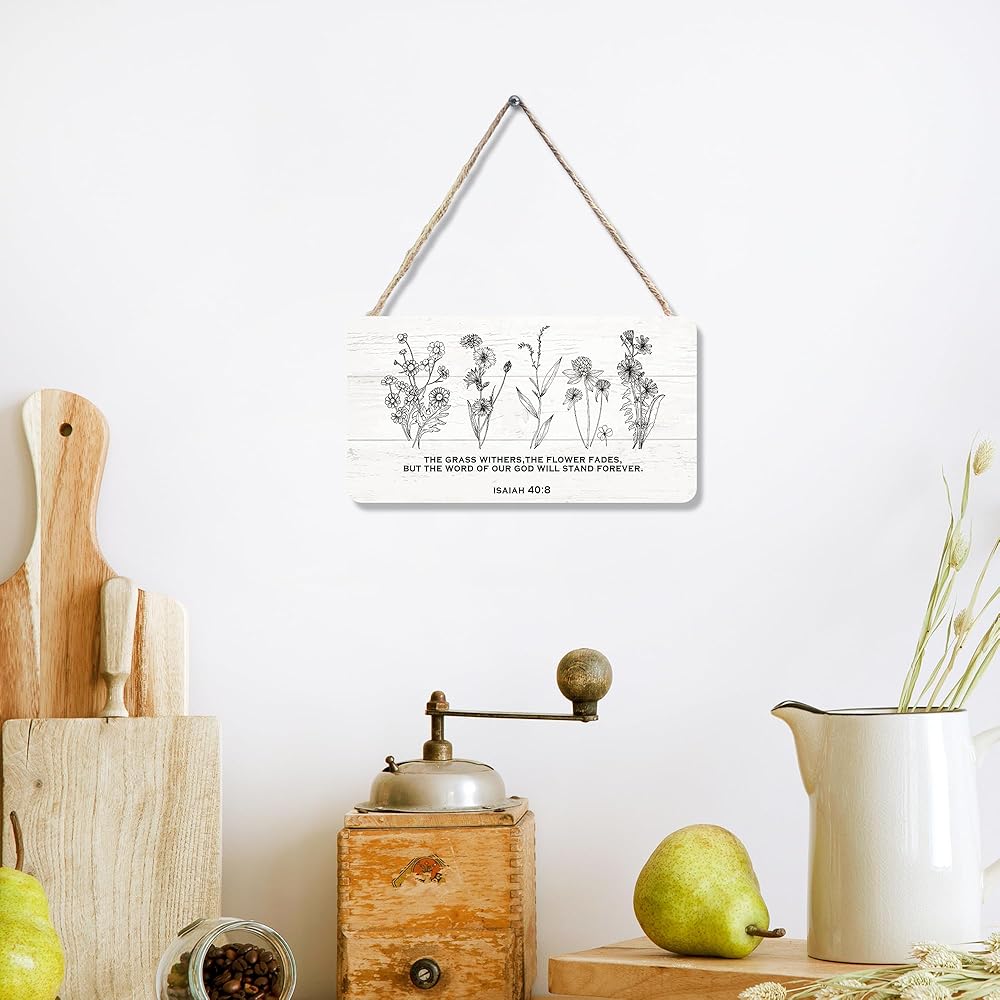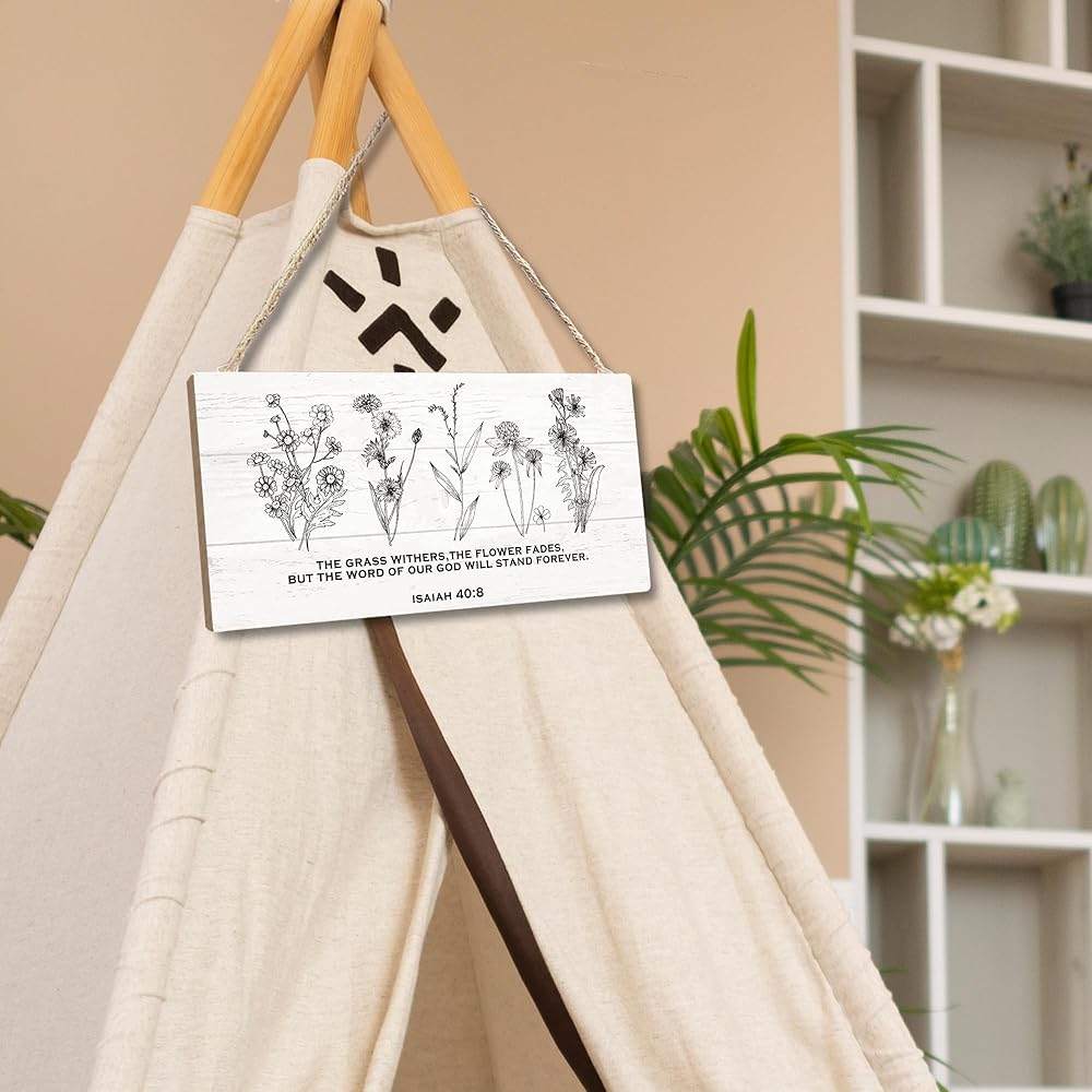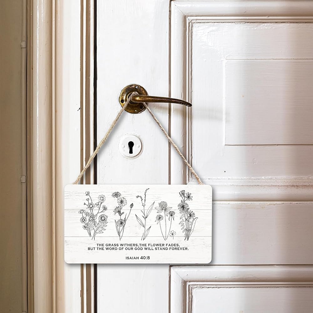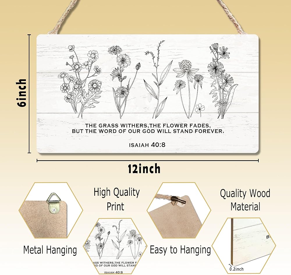 علامة خشبية آية مسيحية ملهمة، آية الكتاب المقدس الدينية معلقة لافتة ديكور جدار لغرفة المعيشة وغرفة النوم المنزلية، ديكور الأزهار غرفة الصلاة ديكور باب 12 × 6 بوصة