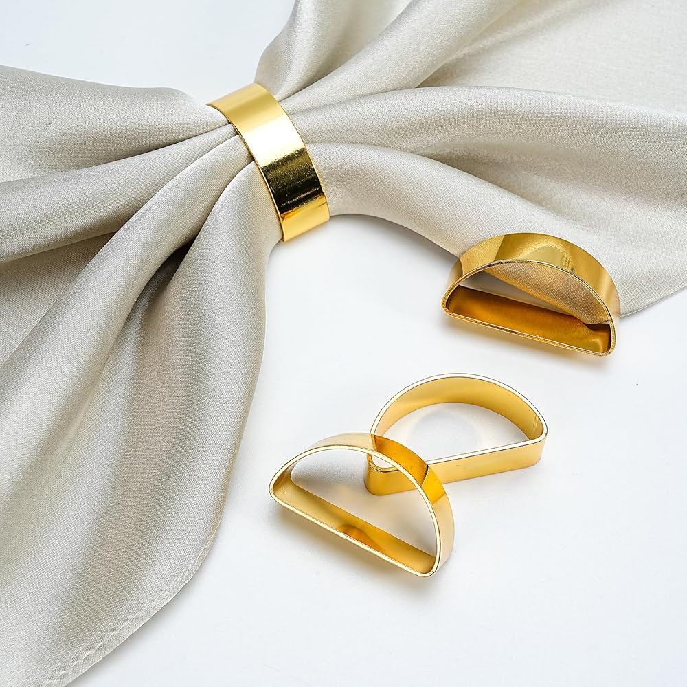 If you're looking for a special gift, the glittering half-round gold napkin rings are the perfect choice