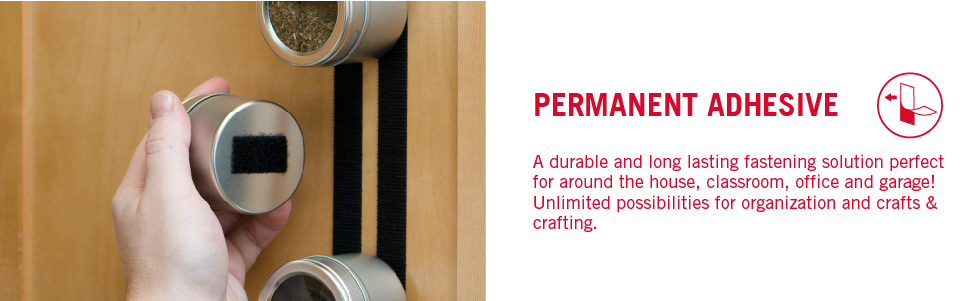 • SUITABLE FOR SMOOTH SURFACES: Hook and loop fastener adheres to most smooth surfaces; features a strong adhesive to organize at home, school, or office; no sewing, gluing or ironing required