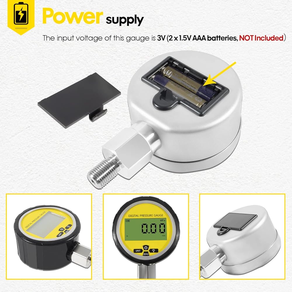 • STURDY & DURABLE GAUGE - made of stainless steel and copper, sturdy and durable, for long time use. High-precision piezoresistive pressure sensor, real-time and accurate pressure display, efficient and convenient