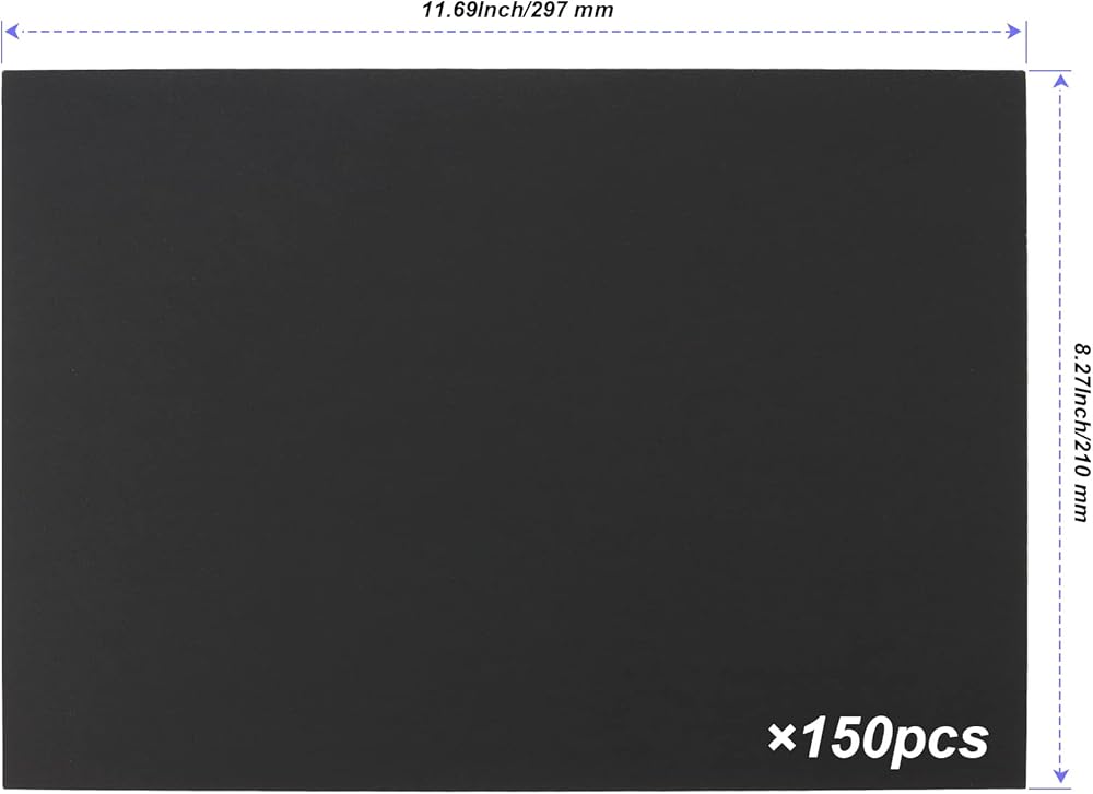 COST-EFFECTIVE - Package includes 150 sheets of heavy black cardstock, measuring 8.5 x 11 inches (same as the A4 size) and weighing 230 grams. Double -sided, environmentally-friendly.