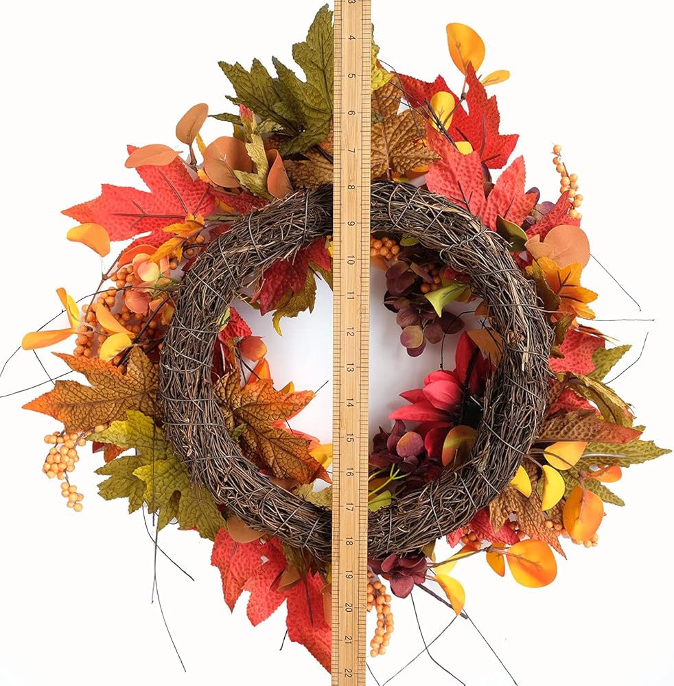 1. الحجم: يبلغ القطر الخارجي لإكليل الكوبية الاصطناعي حوالي 20 بوصة، والقطر الداخلي حوالي 12 بوصة. لقد اخترنا لونين من الكوبية، ليكمل كل منهما الآخر لجعل الإكليل يبدو أكثر امتلاءً وحيوية. أوراق القيقب وتوت الأوكالبتوس تثري الإكليل.