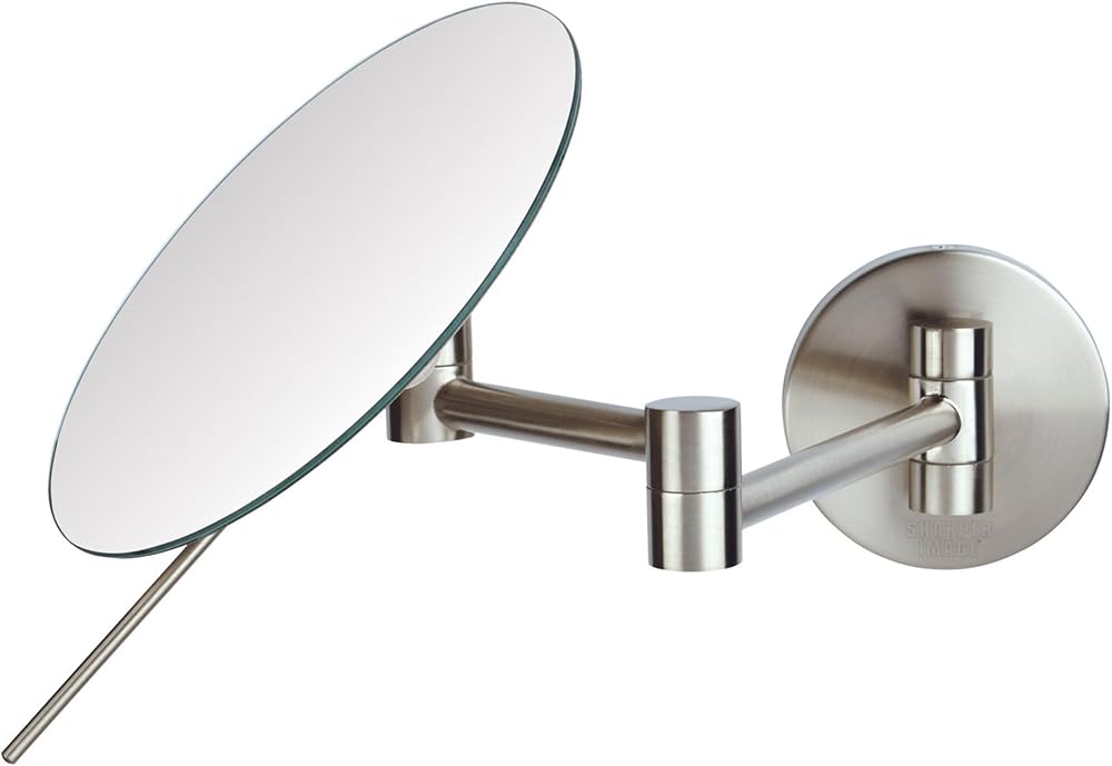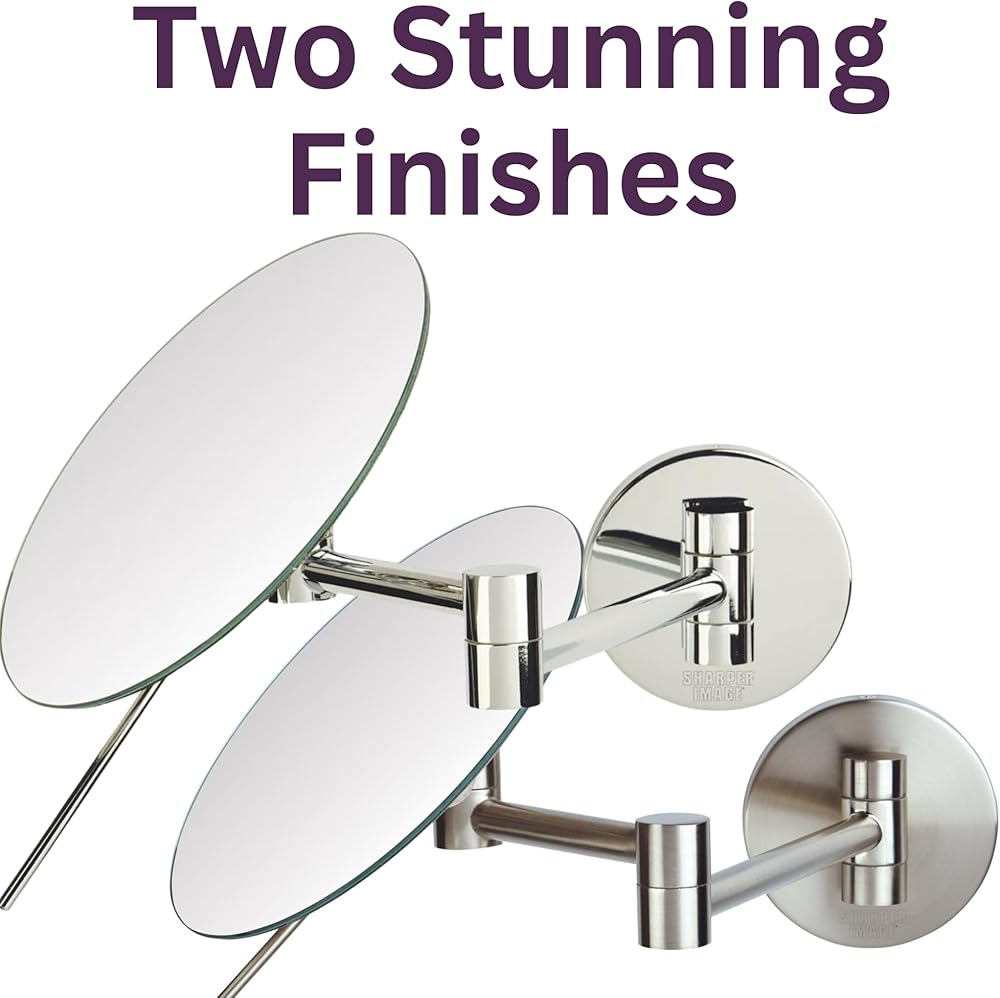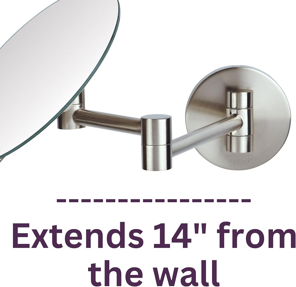 The Sharper Image JRT685N 7.75-Inch slim line wall Mount 5x magnification mirror with tilt adjustment is used in luxury hotels and spas because of its convenience, sleek look and magnification. This single-sided circular mirror has an 7.75-Inch diameter and features a smooth design that provides 5x magnification to make sure every detail of your hair and makeup are in place. The extension arm and smooth rotation adjusts to all angles for a dynamic point of view. The JRT685N extends up to 14-inches from the wall and can be easily moved around, while still being firm enough to hold for odd angles. This mirror has an attractive Nickel finish that protects against moisture and condensation. This item is designed to be wall mounted and comes complete with Mounting hardware. The Sharper Image JRT685N 7.75-Inch slim line wall Mount 5x magnification mirror with tilt adjustment comes with a 1-year limited warranty that protects against any defects due to faulty material or workmanship. Sharper Image is committed to QUALITY, innovation and design. Whether you're looking for the latest home electronics, air purifiers or other lifestyle products, Sharper Image will help you find the perfect product to suit your needs.