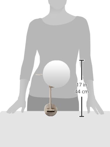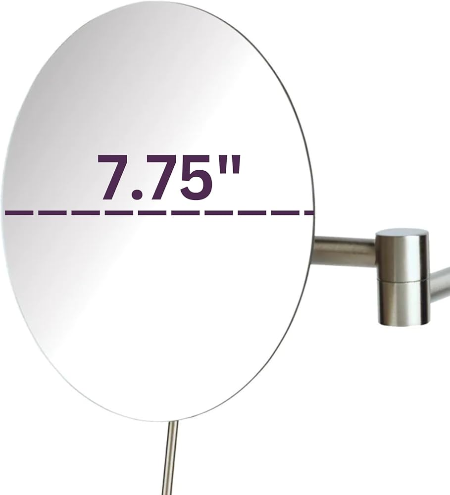 SPECIFICATIONS - This makeup mirror includes an extendable arm for wall-mounting with 5X magnification. The mirror has a modern nickel finish base and tilt function to increase visibility. The mirror has a 7.75-inch diameter and a 1-year warranty. This mirror comes with a 6.5' power cord and plug.
