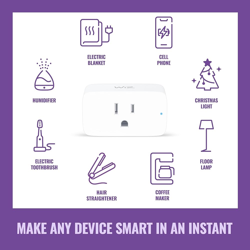 Make everyday devices smart: Control regular lamps, decorative lights, fans, your coffee machine and more. Use WiZ to control devices that only need their power to be on, to link and react to the app.