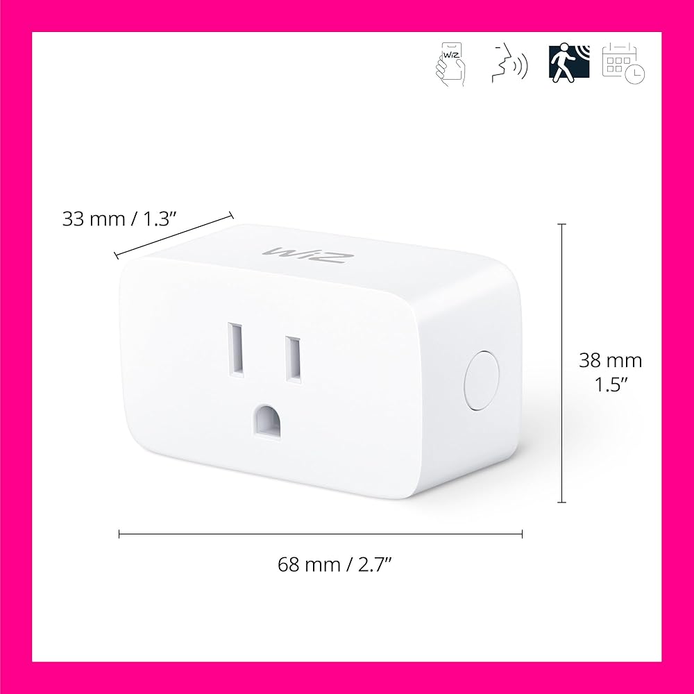 Compact design won't block remaining sockets: Keep your outlets fully functional. The WiZ smart plug has a slim design that fits neatly over the socket while leaving plenty of room to plug in another device or another WiZ smart plug.