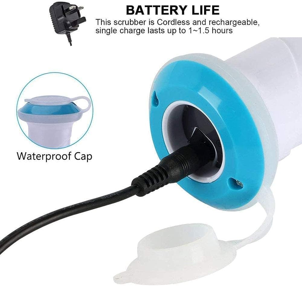 Cordless, rechargeable power scrub brush makes cleaning your tub, shower, grout and fixtures faster and easier with a sparkling end-result