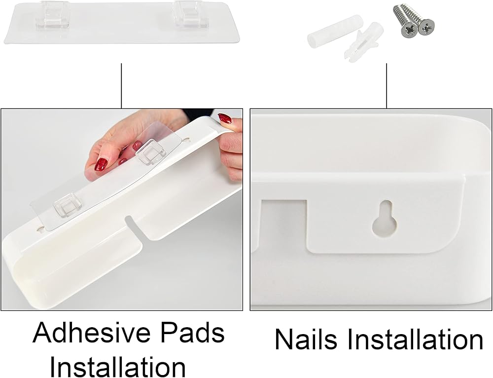 EASY INSTALL: These adhesive caddies can be used nearly anywhere! Install them with the adhesive install kit for screwless shelves that won't leave any holes in your wall. Or, if you want a more secure fit, 2 screws and wall anchors are also included for your convenience. The choice is all yours to decide how you want to attach these organizers to the wall!