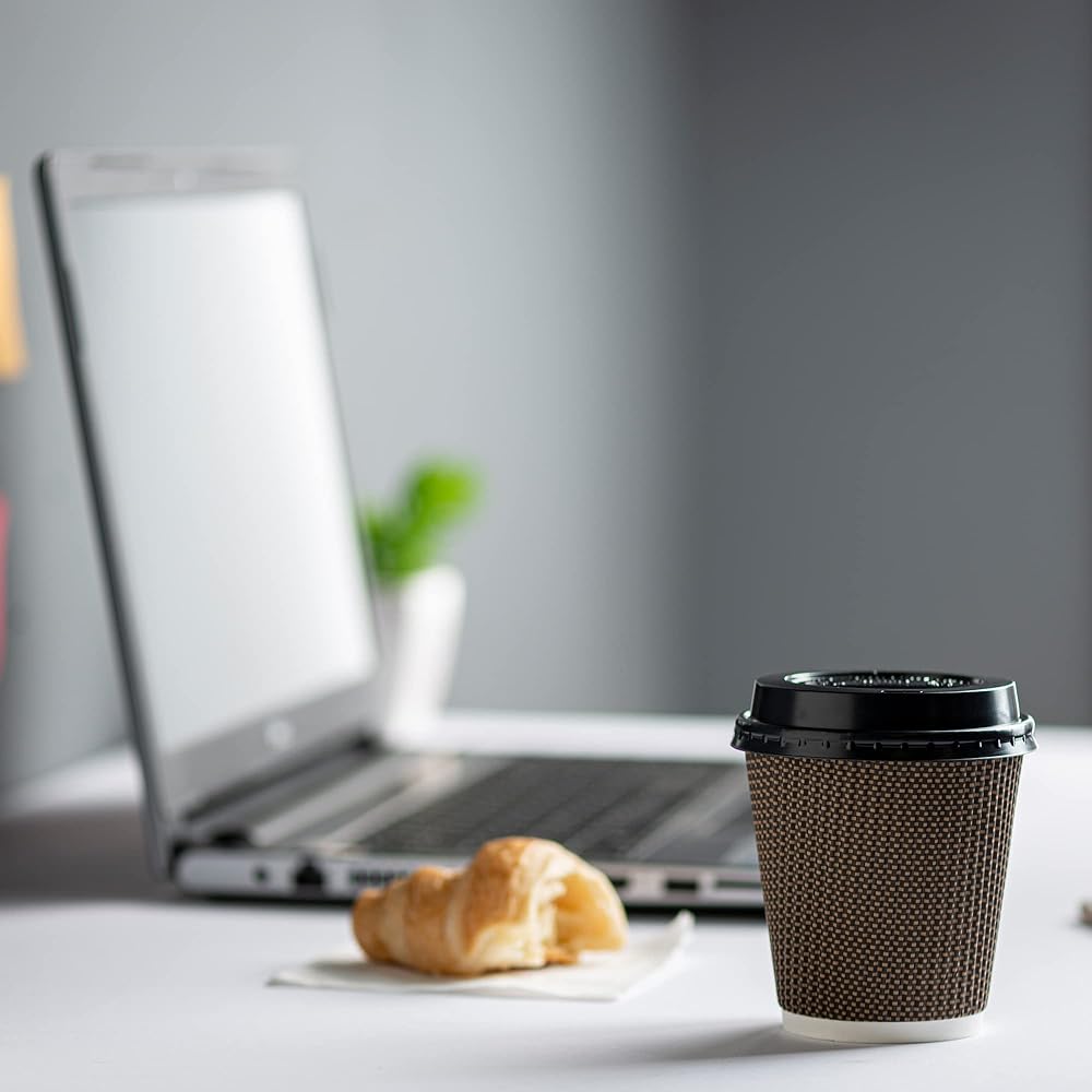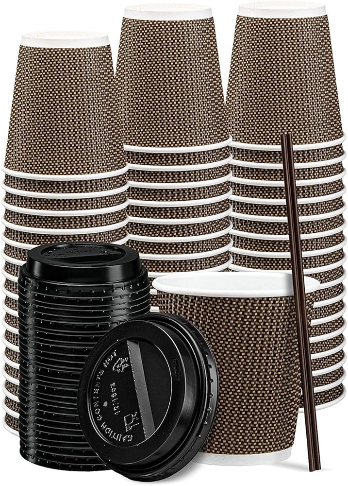 المجموعة الكاملة: تحتوي هذه العبوة على 50 مجموعة بوزن 16 أونصة. أكواب قهوة ساخنة من الورق المموج المعزول، كل منها مزود بغطاء مطابق (قد يختلف لون الغطاء)، مما يوفر جميع الأساسيات للاستمتاع بالمشروبات الساخنة بشكل مريح.