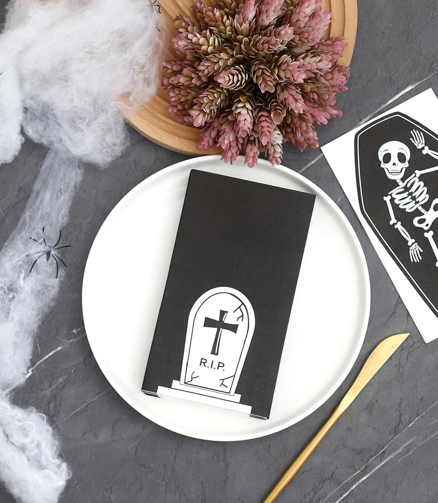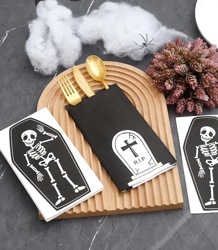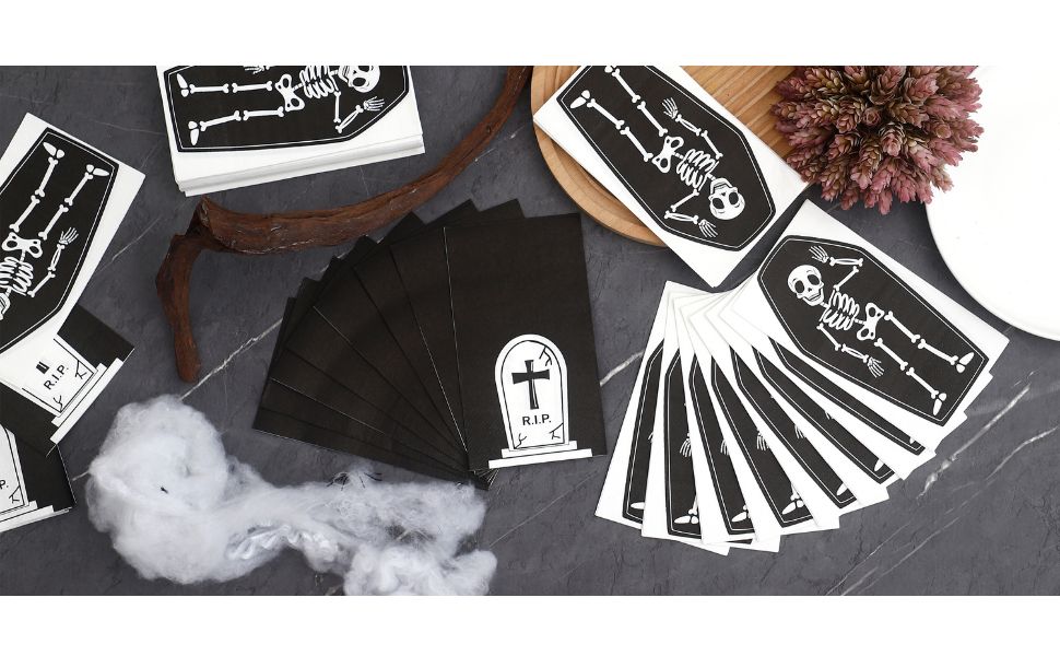 👻 𝗖𝗛𝗜𝗖 𝗗𝗘𝗦𝗜𝗚𝗡𝗦: تم تصميم هذه المناديل وطباعتها في الأصل بواسطة Winoo. ستفاجئ ضيوفك بالتأكيد بهذه التصميمات الحديثة والفريدة من نوعها في حفلة بطابع الهالوين.