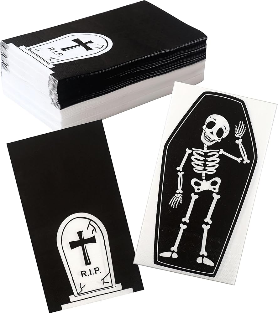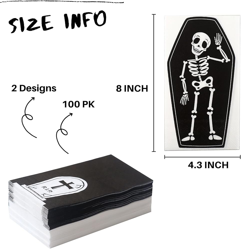 100 قطعة من مناديل الضيوف الورقية للهالوين، مناديل العشاء للاستعمال مرة واحدة، مناشف ضيوف الهالوين، مناديل الحمام الهيكلية للاستعمال مرة واحدة، منشفة يد للضيوف على شكل جمجمة من أجل لوازم الحفلات ذات موضوع الرعب