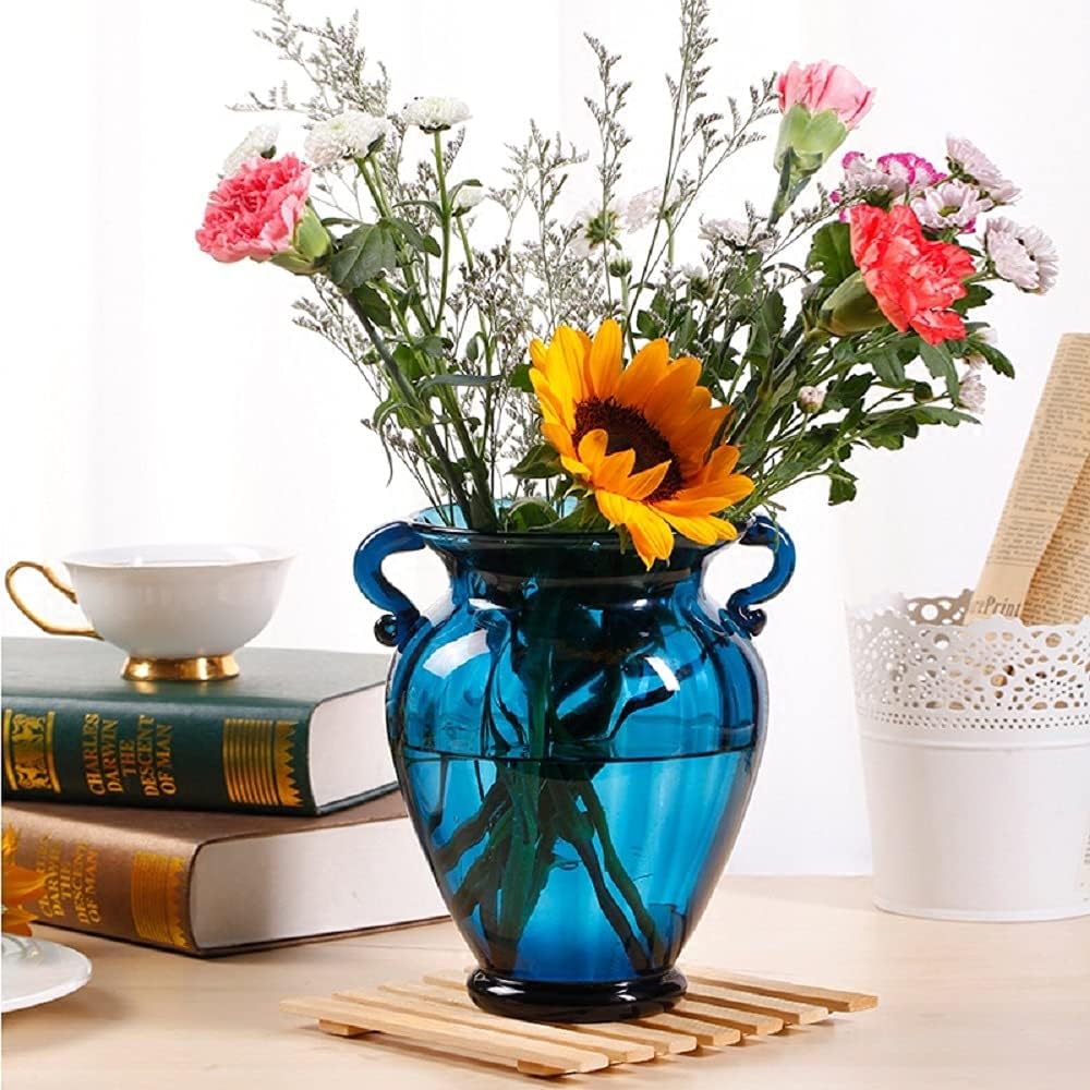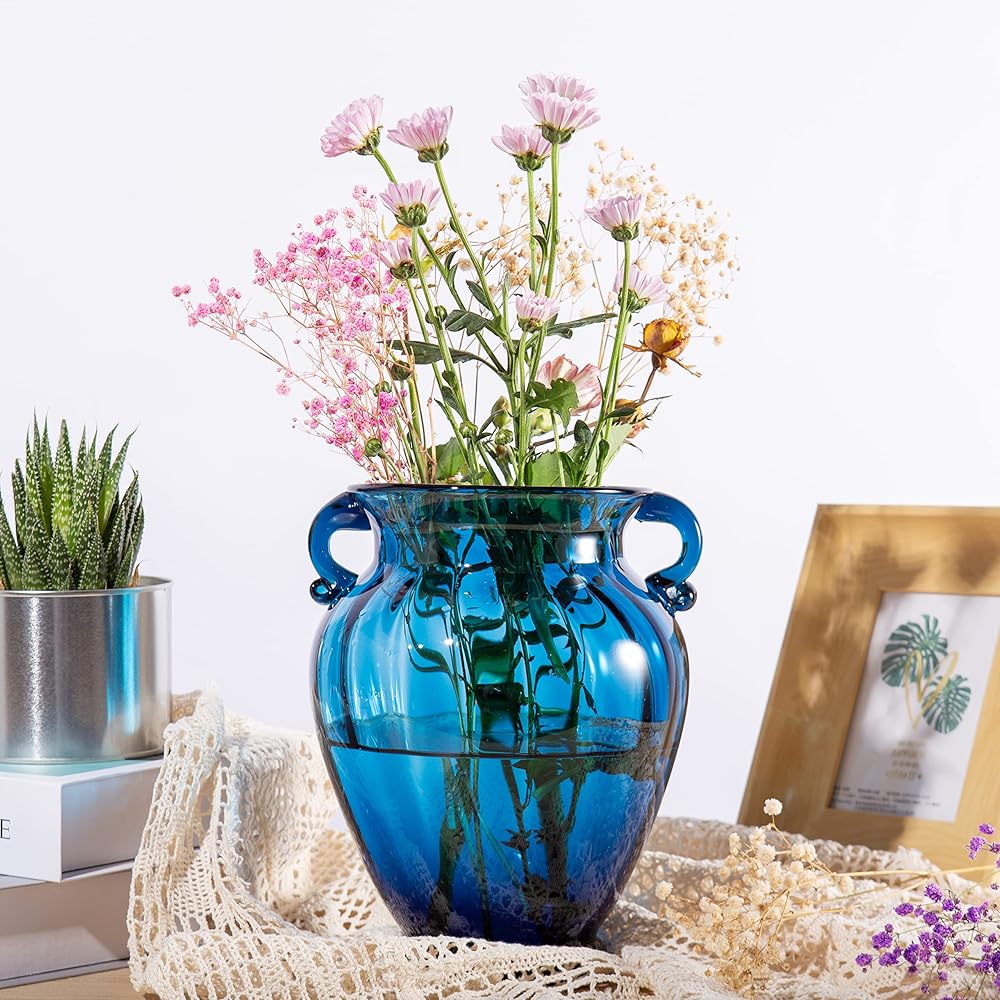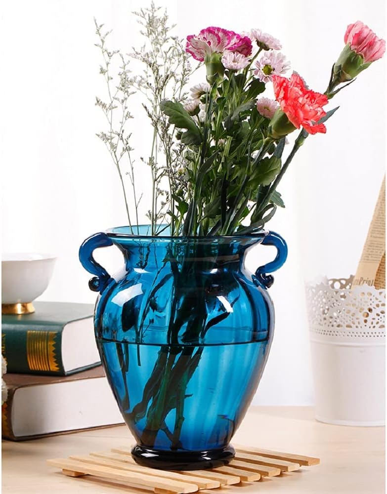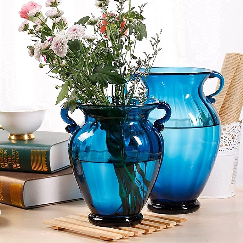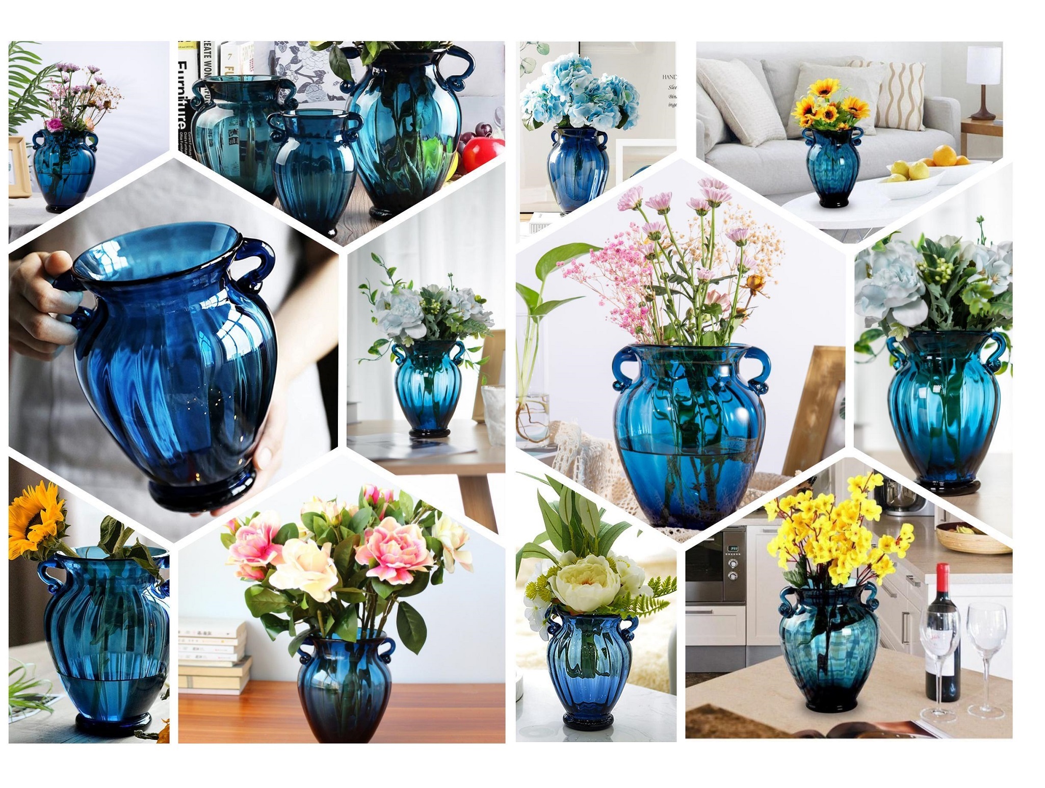 【تتضمن العبوة】- 1 × مزهرية زرقاء اللون (بدون زهور). تأتي هذه المزهرية من زرقة البحر، ولها أذنان منفوختان يدوياً. والفم مفتوح، مما يسهل وضع المزيد من الزهور؛ الجزء السفلي سميك ومتسع، مما يجعله أقوى وأكثر استقرارًا.
