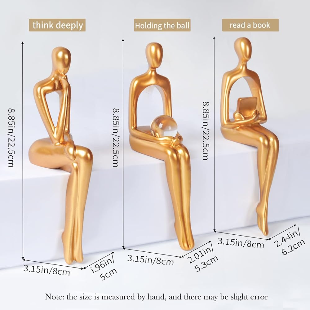 【إلهام التصميم】تمثال المفكر الذهبي الخاص بنا مستوحى من المفكر رودين. ومصممة من خلال الجمع بين الفن التجريدي المجوف. خطوط بسيطة وأشكال رسومية مجردة. مظهر عالي الجودة دون التضحية بالتفاصيل. 3 مفكرين جالسين مختلفين. إن الهدوء الذي يظهر على السطح والقوة المخبأة في الداخل أكثر إثارة للتفكير. ضعه على رف الكتب وحامل التلفزيون وطاولة القهوة. ليس مجرد زخرفة، ولكن رفقاء روحك.