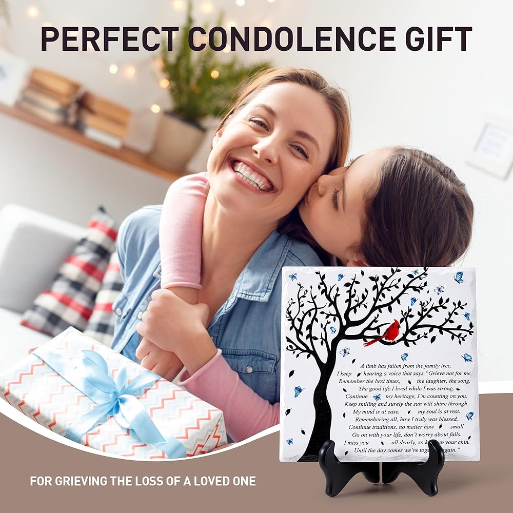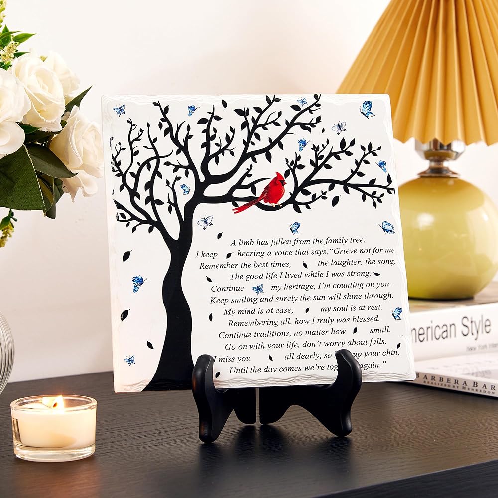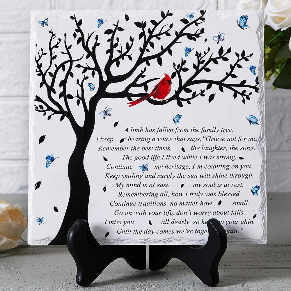 • جودة عالية ومصنوعة بشكل جميل. لوحة تعاطف WOODEXPE مصنوعة من مادة الخشب والسيراميك. مصممة بحافة مكسورة ذات مظهر طبيعي ومطبوعة بكلمات مؤثرة، واضحة ولا تبهت أبدًا. الرسالة المكتوبة: "لقد سقط أحد الأطراف من شجرة العائلة".
