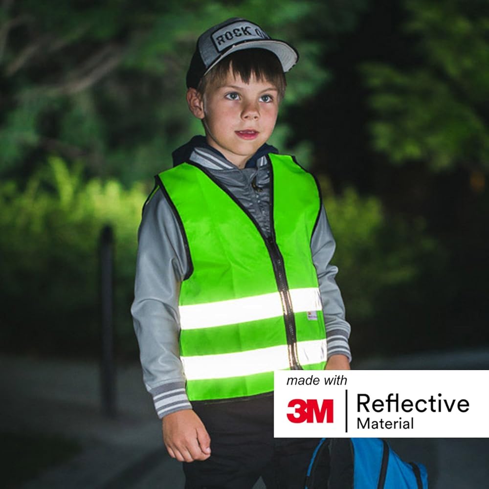 صُنعت سترات الأمان العاكسة للأطفال من مادة عاكسة 3M، والتي تضمن رؤية عالية في الليل وفي الظروف الجوية المنخفضة الإضاءة. يمكن للسائقين رؤية المادة العاكسة 3M من مسافة تصل إلى 200 متر.