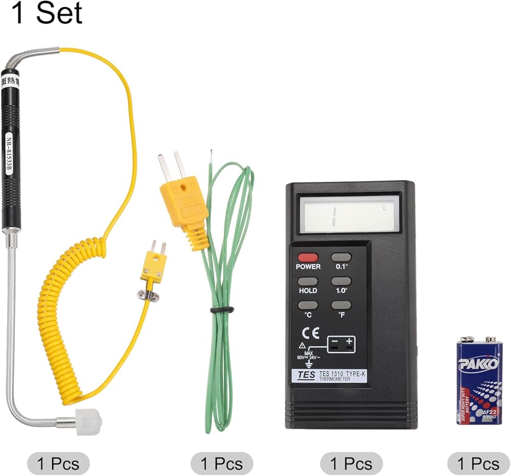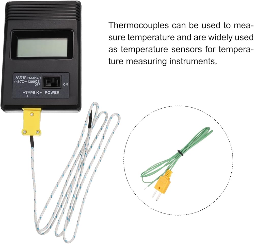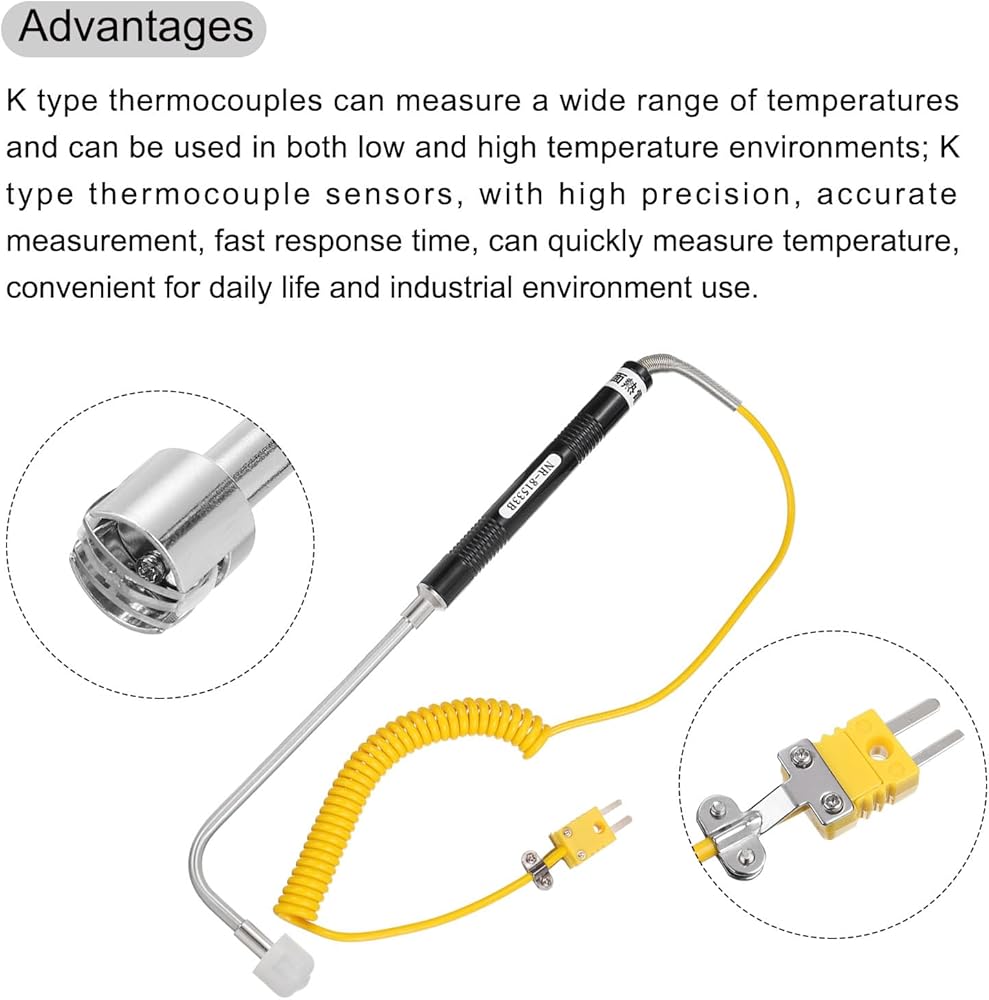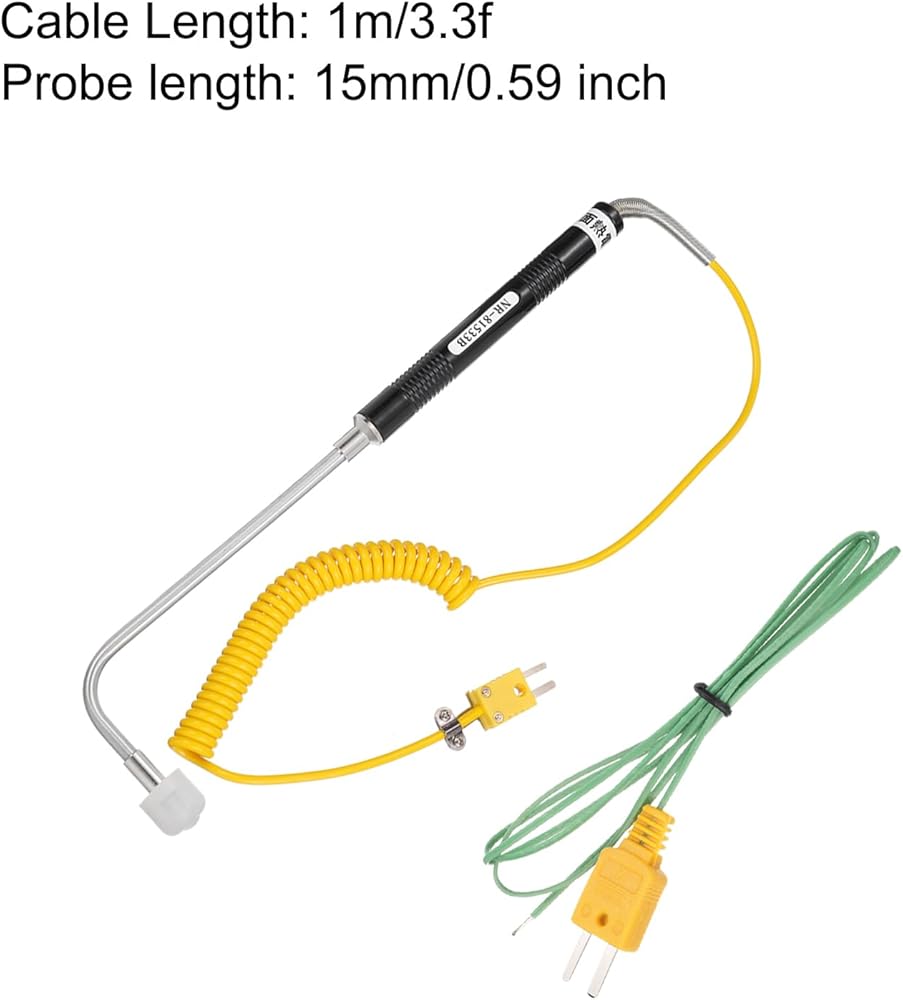 مقياس درجة الحرارة الرقمي، بحجم: -50 إلى 1300 درجة مئوية (-58 إلى 2372 درجة فهرنهايت) نطاق قياس درجة الحرارة، طول كابل مزدوج حراري 1 متر/3.3 قدم، طول مسبار من الفولاذ المقاوم للصدأ 15 مم/0.59 بوصة