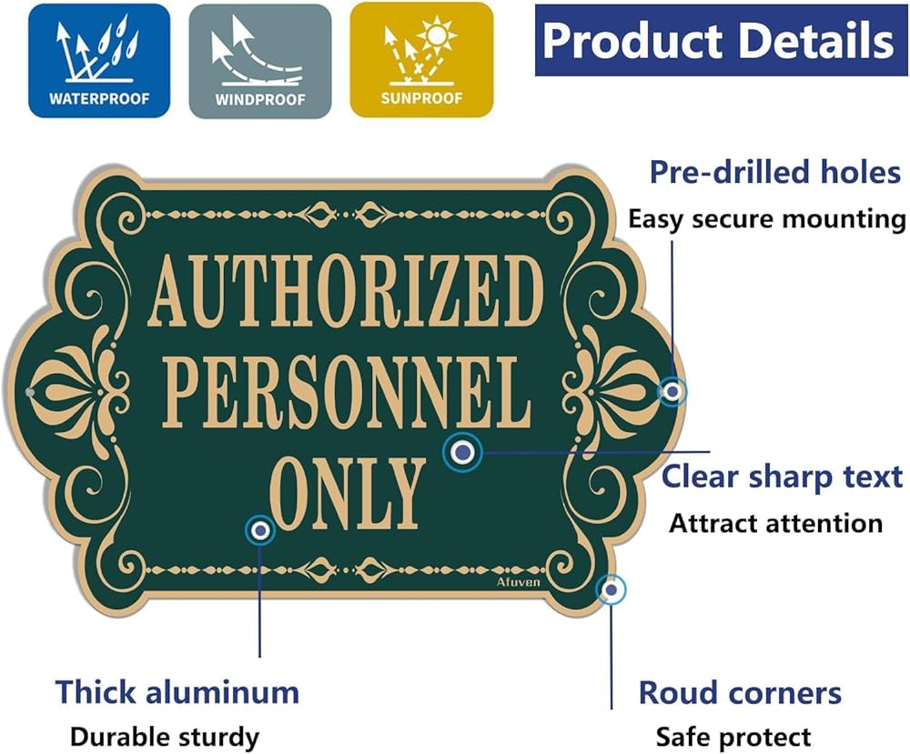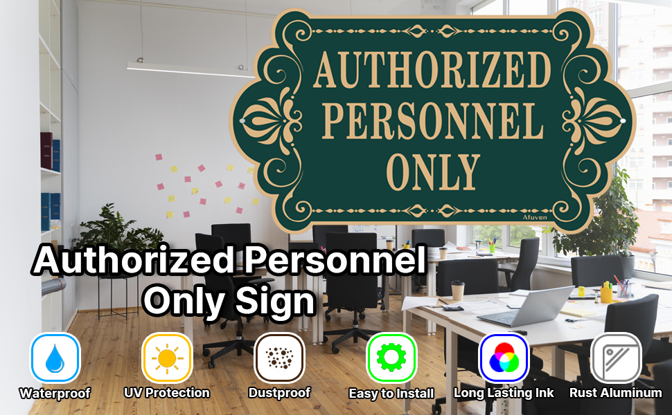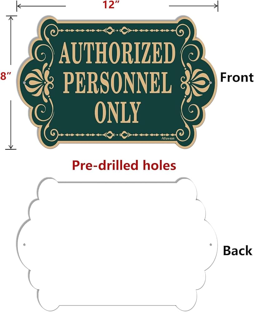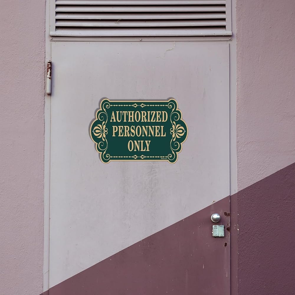 لافتة "للموظفين المصرح لهم فقط"، من المؤكد أن تصميم الحروف الذهبية والخضراء المرئية بوضوح سيجذب انتباه الزوار المحتملين. إنها الأداة المثالية لعملك. إنها علامة مفيدة للسماح لأي شخص بمعرفة أماكنك أو غرفك الخاصة.