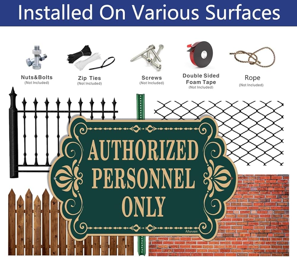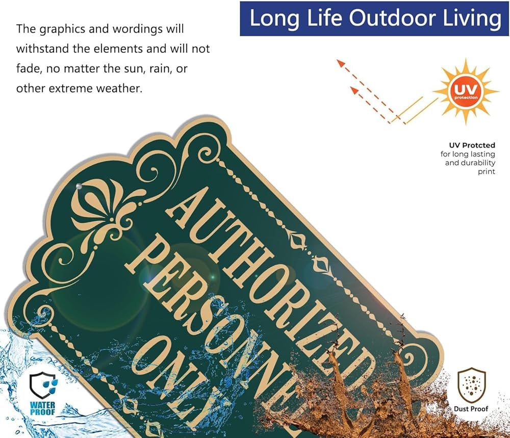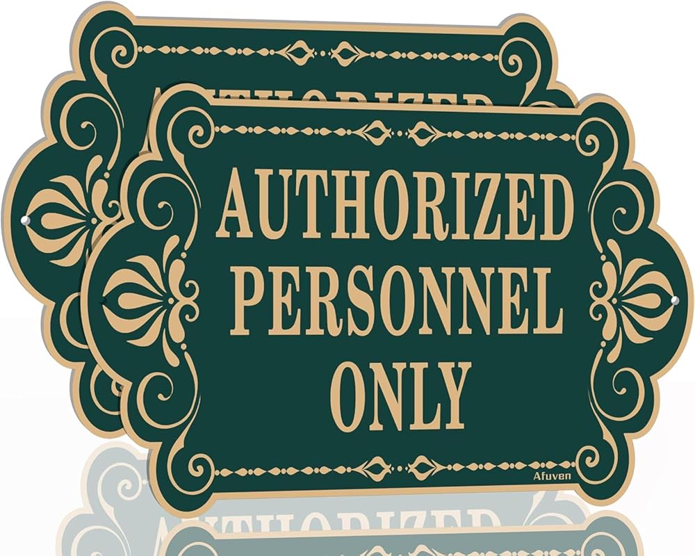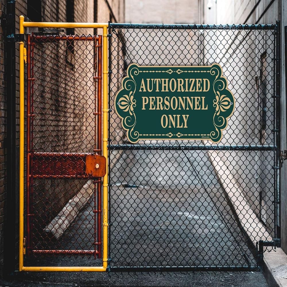لافتة "للموظفين المصرح لهم فقط"، من المؤكد أن تصميم الحروف الذهبية والخضراء المرئية بوضوح سيجذب انتباه الزوار المحتملين. إنها الأداة المثالية لعملك. إنها علامة مفيدة للسماح لأي شخص بمعرفة أماكنك أو غرفك الخاصة.