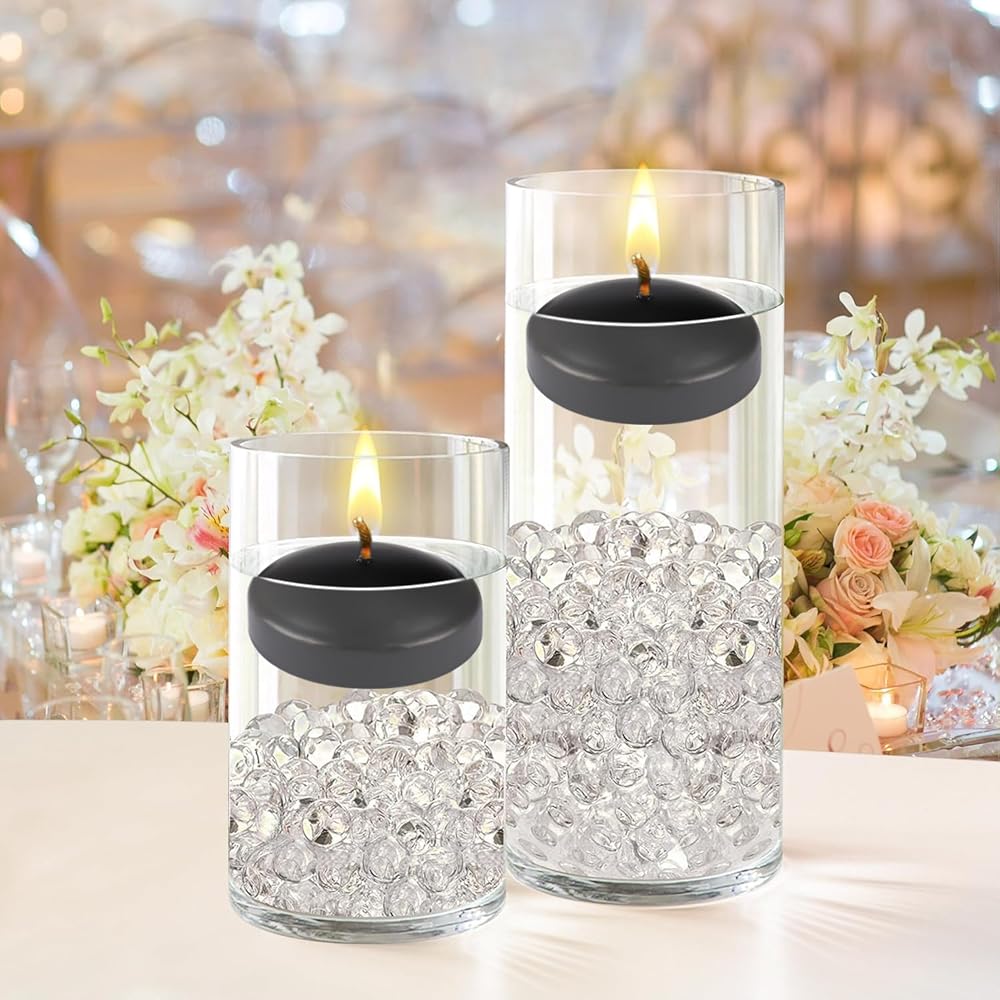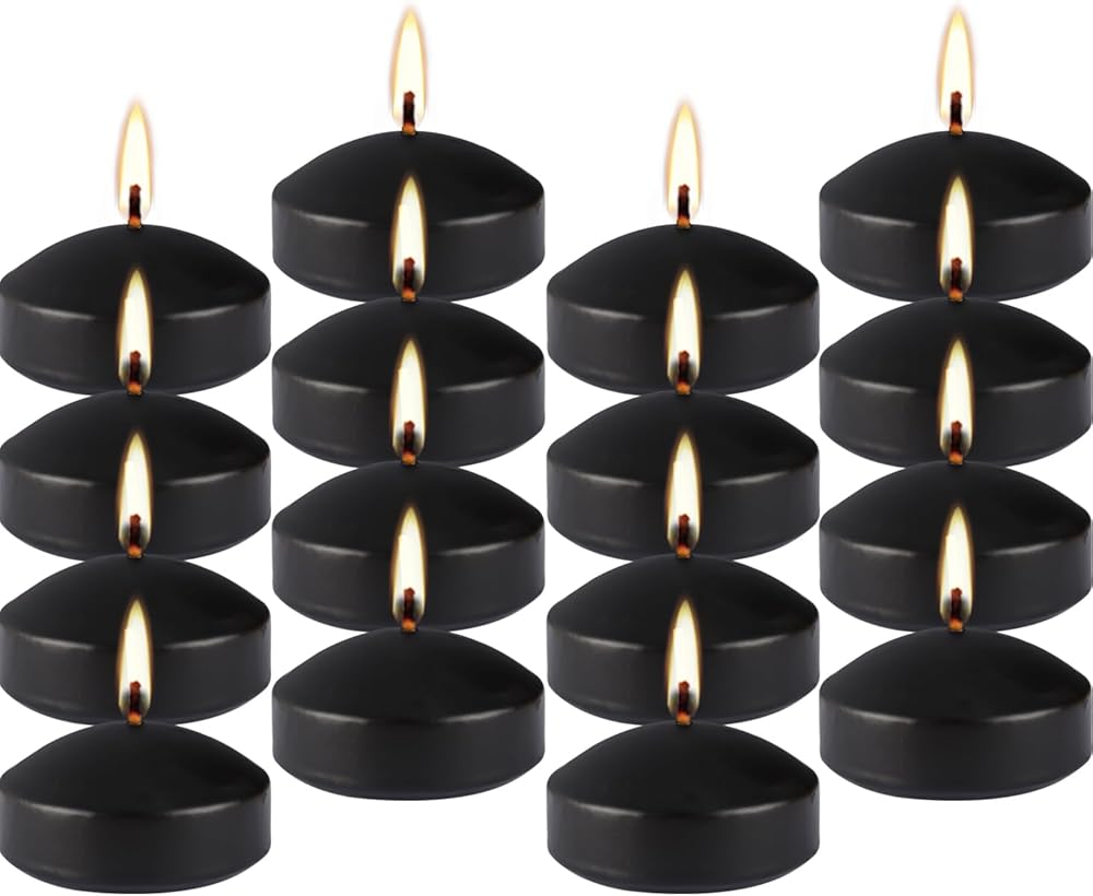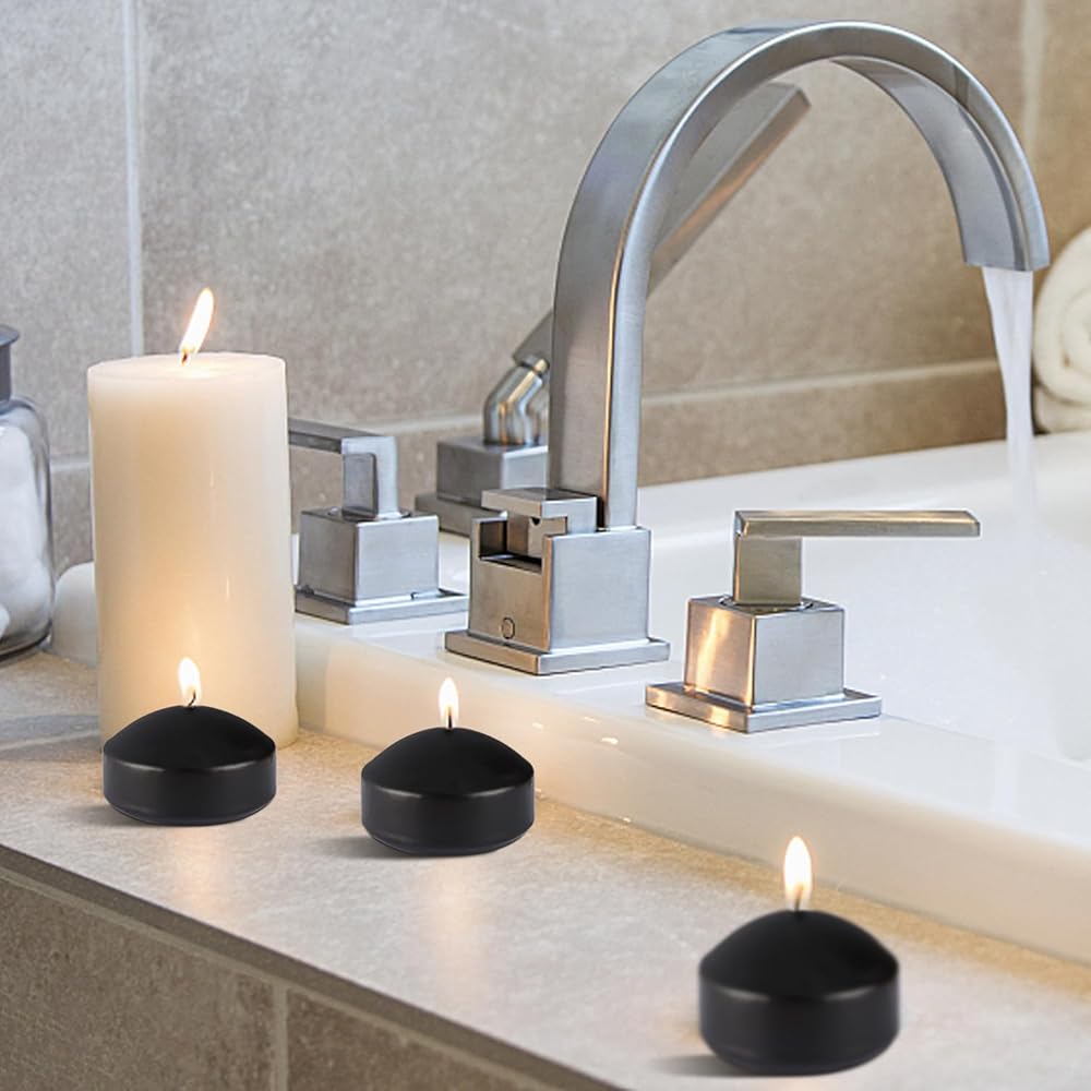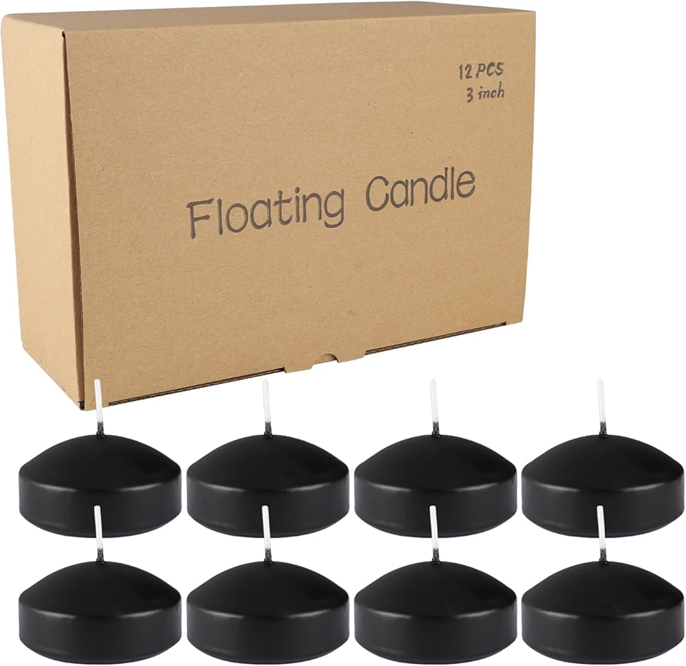 【Premium Material】Made with high-quality wax to prevent dripping and melting, each 3" floating candle ensures long-lasting burn.The cotton core wicks burn cleanly and smoke-free.