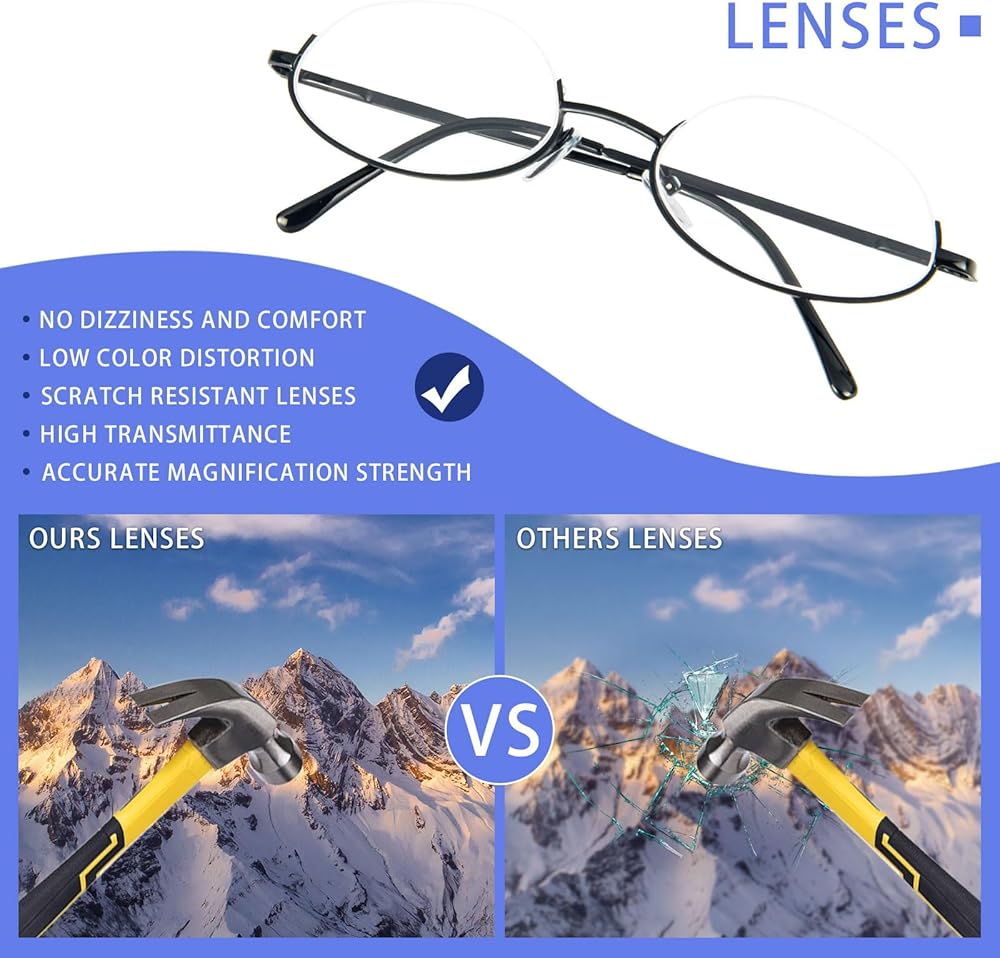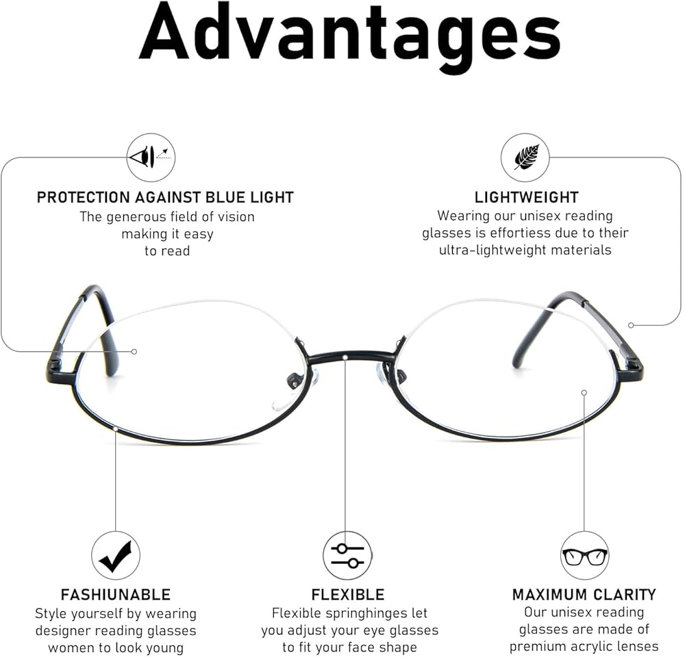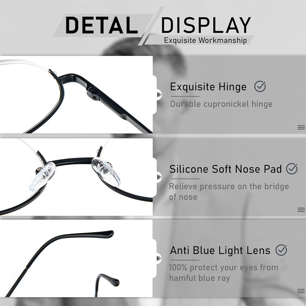 【نظارة قراءة عصرية بنصف إطار】التصميم البسيط بنصف الإطار يجعلك تبدو محترفًا عند العمل أو القراءة. إذا كنت ترغب في التميز والحصول على مظهر جميل، فإن نظارات القراءة شبه بدون إطار هذه هي خيارك الأمثل.