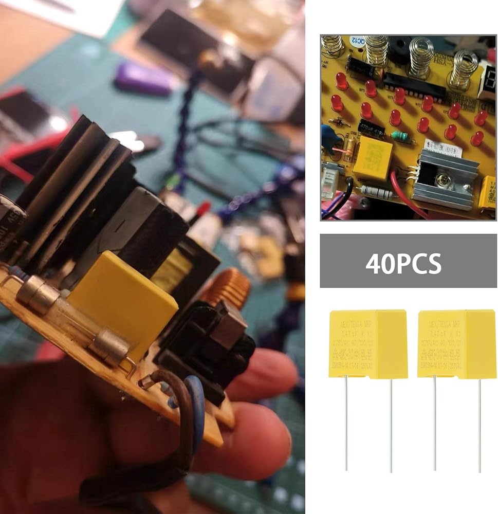 The Lord of the Tools 40 قطعة 0.47 فائق التوهج 275 فولت، مجموعة متنوعة من مكثفات السلامة، مجموعة متنوعة من مكثفات قمع التداخل، ملحقات لوصلة تصفية عوائق التيار المستمر