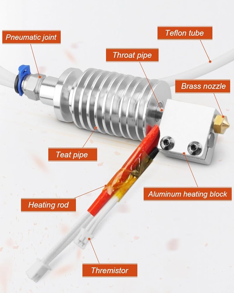 Precise temperature control: Hot end has a built-in temperature sensor and heating element, which can achieve precise temperature control, ensuring that the printing material is melted at the appropriate temperature and maintaining a stable printing temperature.