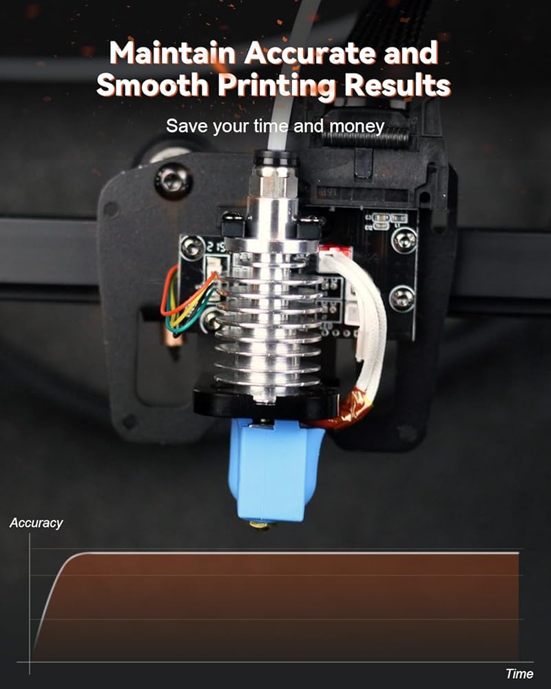 Material: Kobra Max hot end kit is composed of high-quality heat-resistant aluminum heating block, which has excellent heat dissipation and can form a natural protection for your printer while maintaining accurate and smooth printing effects. It is stable, wear-resistant, and corrosion-resistant. More time and more efficiency.