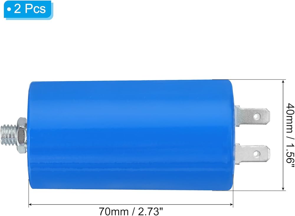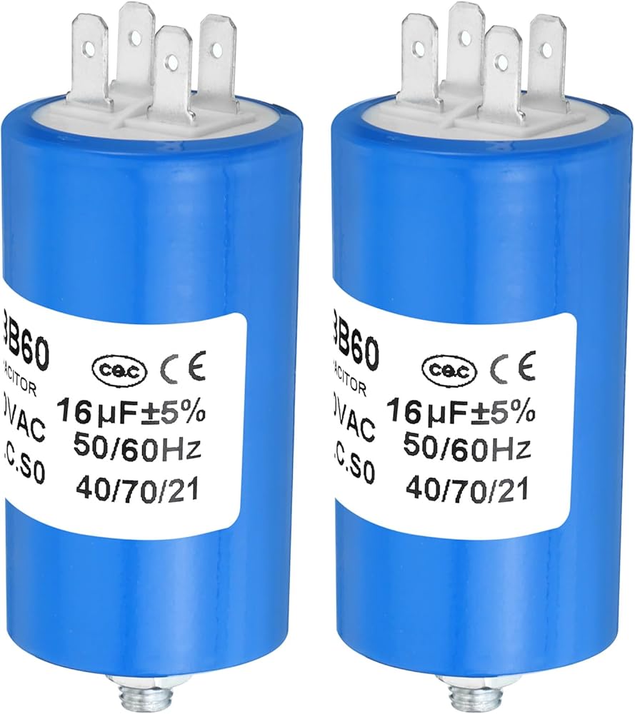 Model: CBB60;Material: Polypropylene Film Plastic Shell;Lead End: 4 pins;Tolerance: ±5%;Rated Capacity: 25uf ;Climatic Category: 40/70/21; Body Size: 93 x 40mm/3.63 x 1.56inch (H x W) ; Pack of 2PcsRun Capacitor
