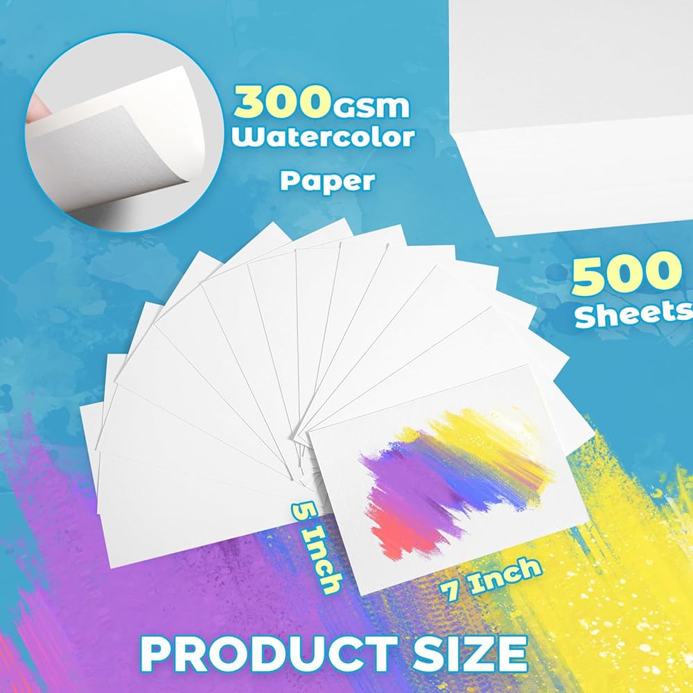 500 قطعة من ورق الألوان المائية من TOUNALKER، ورق ضغط أبيض بارد 300 جرام في المتر المربع بألوان مائية لوحة رسم فنية للأطفال طلاب أكاديمية الألوان المائية بداية الرسم