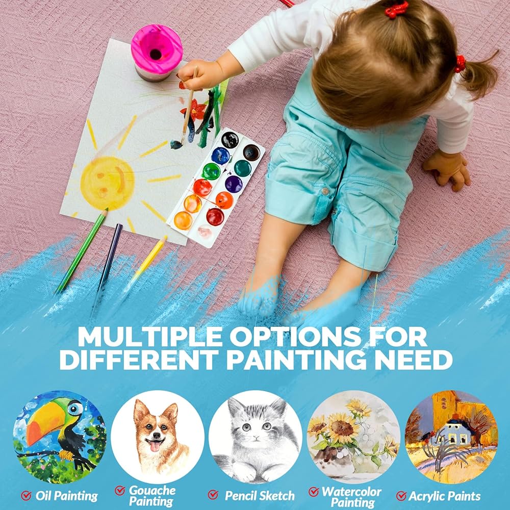 【مناسب للجميع】سواء كنت فنانًا متمرسًا أو بدأت للتو في رحلتك الإبداعية، فإن ورق الرسم هذا مصمم لتلبية جميع احتياجاتك. إنه يلبي احتياجات الرسامين من جميع مستويات المهارة - الأطفال والطلاب والكبار - مما يضمن أن الجميع يمكنهم الانغماس في المتعة والتأثيرات العلاجية لإنشاء عمل فني جميل على ورق ألوان مائية من الأكاديمية الاحترافية.