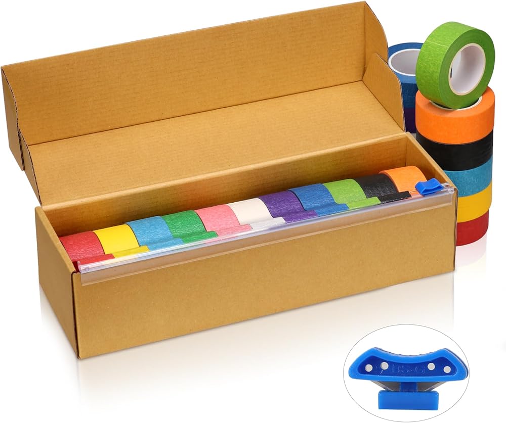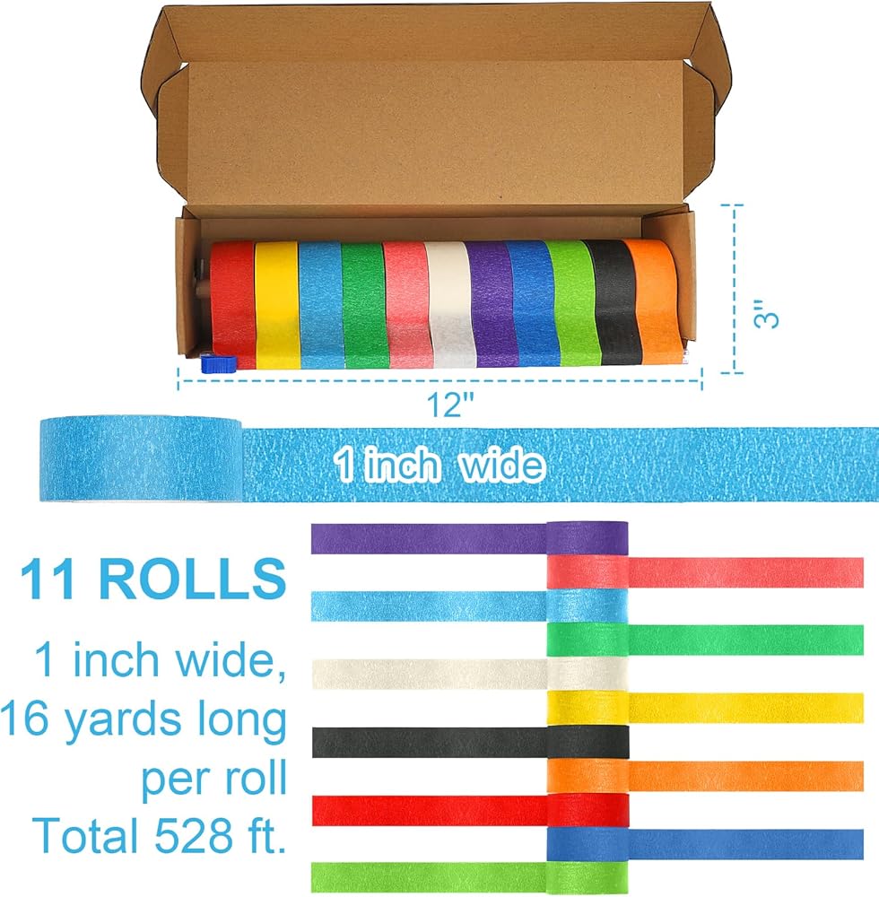 11 لونًا من شريط إخفاء الرسام، موزع شريط آمن، شريط لاصق ملون، بكرات شريطية ملونة، ملحقات الطلاء، شريط ورقي بألوان قوس قزح للفن DIY، صندوق حرفي، ديكور حفلات المعلم (1 بوصة عرض)