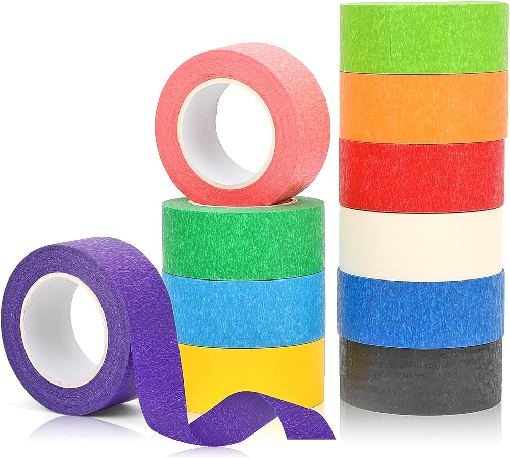 • 2. Product Details: Our colored painting tape is 1 inch wide, 16 yards long, 11 rolls, and the total length is 176 yards. Each roll is a different color, black, white, dark blue, light blue, dark green, light green, yellow, red, orange, pink, purple. Our colored tape is made of high-quality textured paper, odorless, waterproof and easy to tear.