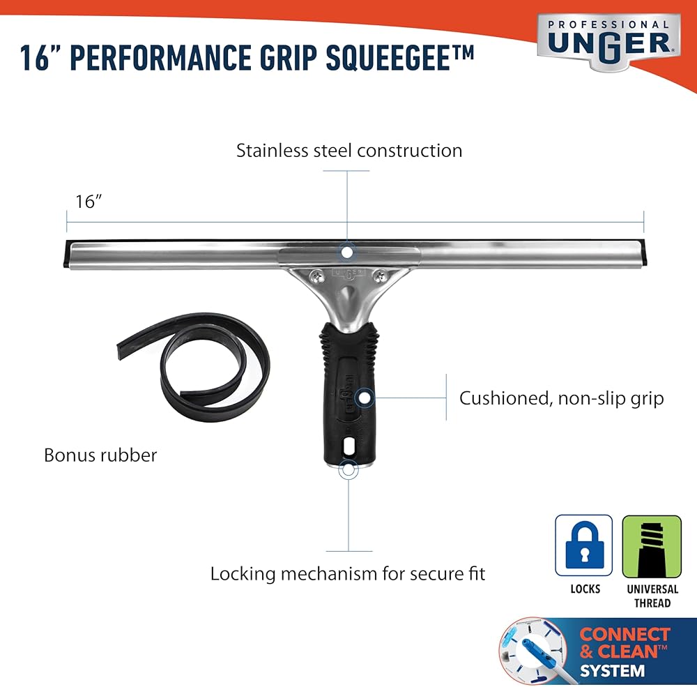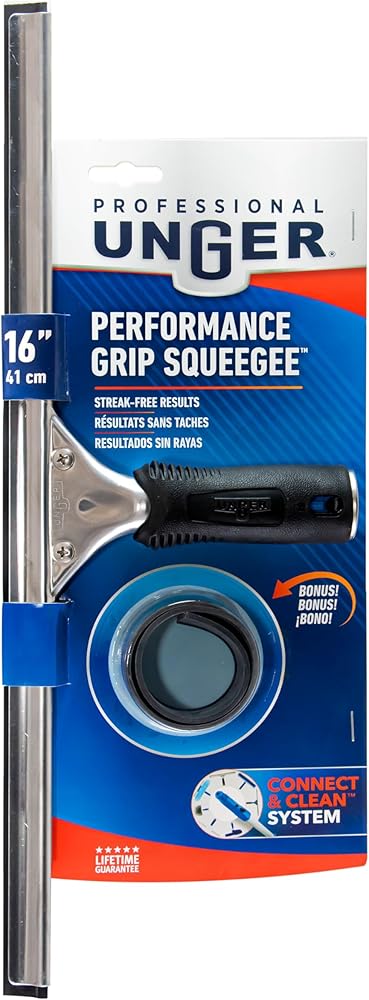 Unger Professional Performance Grip Squeegee uses professional-grade rubber to deliver streak-free results to outdoor windows and glass. Trusted by professionals for over 50 years and recognized as a cleaning authority, the Unger Professional brand is the choice of semi-professionals and DIYers who want the best possible tools for the job. We offer a full range of best-in-class products including window cleaning tools, floor squeegees, outdoor brushes, and buckets designed to handle even the toughest jobs. Our high-quality, innovative tools deliver professional-level results every time. Quality Tools for Smart Cleaning!
