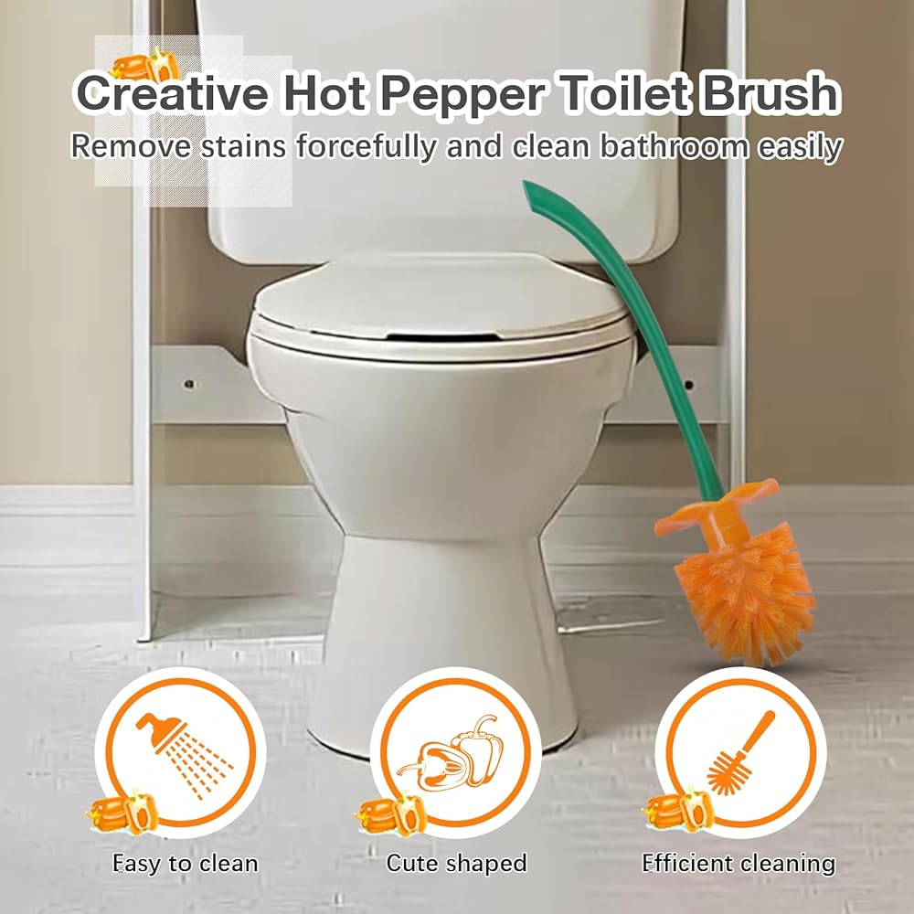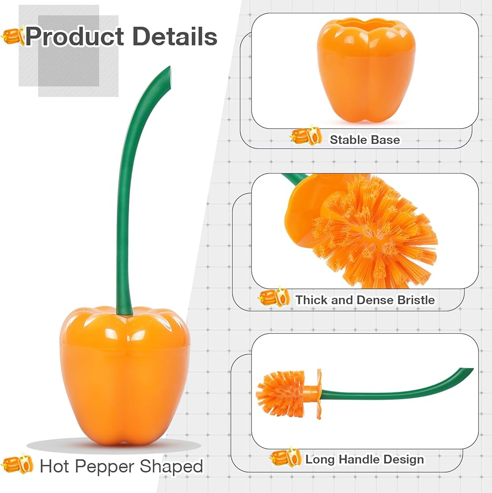 🫑【مقبض طويل يشبه جذع الفلفل 】يمكن شطف فرشاة المرحاض بالفلفل الجرسي من أدنيكيا بسهولة للتخلص من الشعر، مما يوفر وقتك وجهدك في التنظيف. مقبض طويل غير قابل للانزلاق والفلفل الحار يشبه جذع الفلفل مع بعض الانحناء للتعليق، مما يقلل من احتمالية رش الماء على جسمك، والركوع والانحناء، وسهل الإمساك والاستخدام.