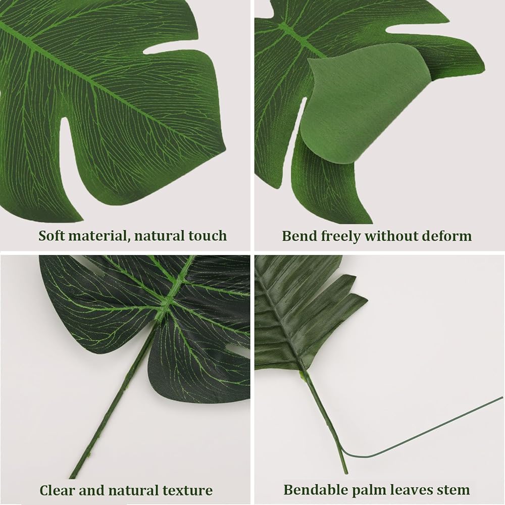 【Natural Form】 Artificial palm leaves have natural and realistic texture, smooth surface, bright colors and can be reused.