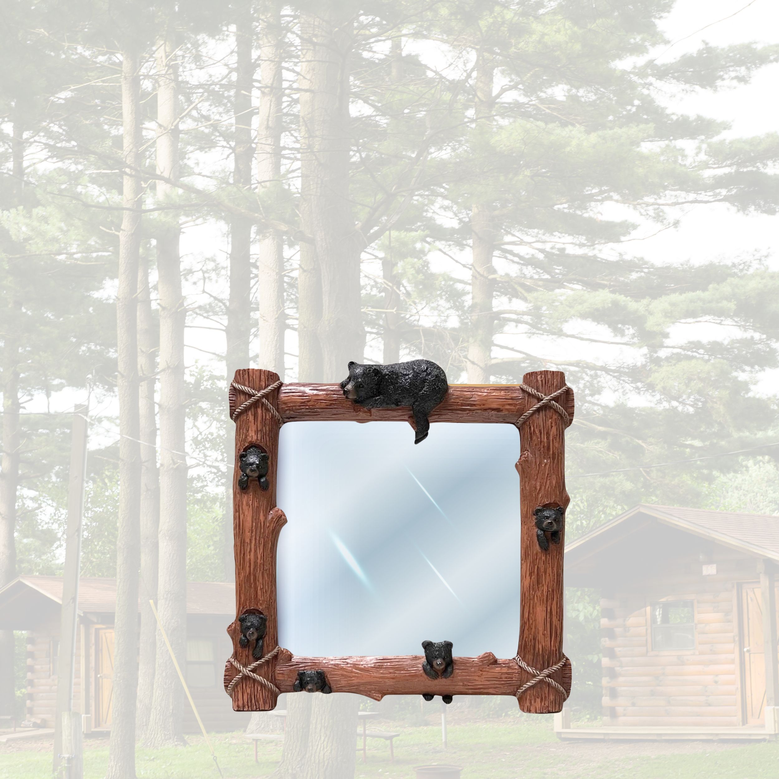 سحر ريفي وتصميم رائع: ارفع مساحتك باستخدام مرآة حائط ريفية تتميز بأشبال الدب اللطيفة التي تلعب في إطار تصميم يشبه الخشب. مثالية لتزيين الجدران على طراز النزل أو على شكل كابينة أو مستوحاة من الغابات.
