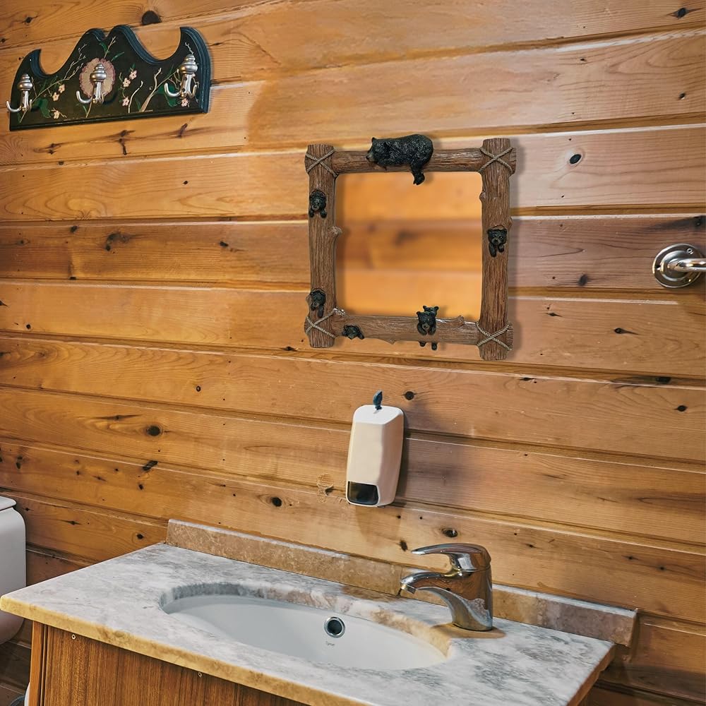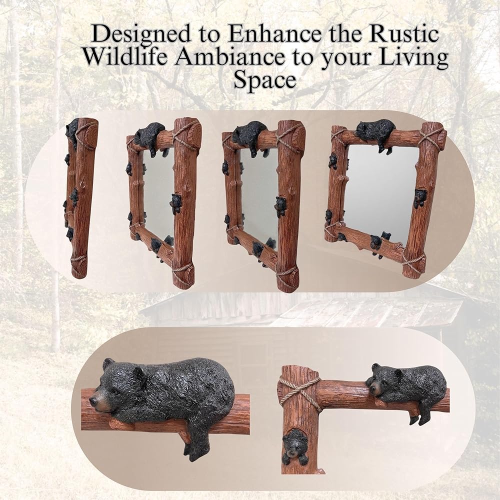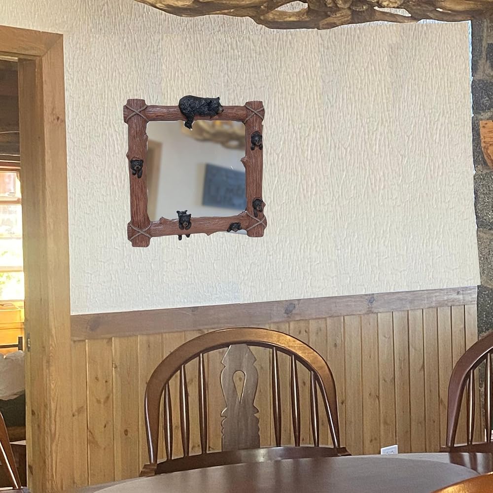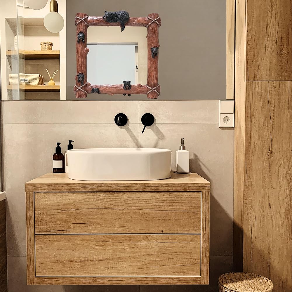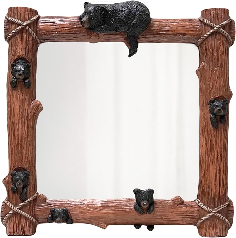 BestGiftEver الدب الأشبال على فرع شجرة مرايا الحائط الزخرفية - مرآة حمام المقصورة تصميم ريفي خمر - ديكور الحائط على الطراز الريفي مع موضوع مستوحى من الدب - مرآة مؤطرة لودج البرية