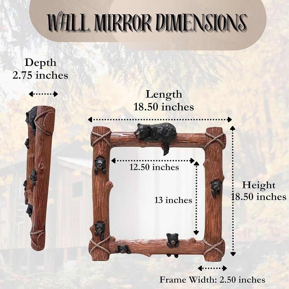 حجم متعدد الاستخدامات لأي مساحة: بأبعاد حوالي 18.50 سم × 2.75 سم × 18.50 سم، تناسب مرآة الحائط المستوحاة من الدب الحمامات وغرف النوم والمدخل والمكتب أو أي منطقة تحتاج إلى لمسة ريفية عتيقة.